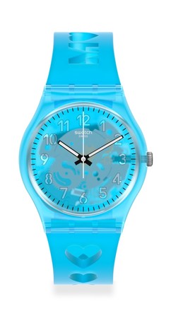 スウォッチの母の日のスペシャルウォッチは、たくさんの思い出を即座に呼び起こします。宿題をやったこと、ラブレターを書いたこと、レトロでファンシーな定規で角度を測ったこと。色は、ピンク (LOVE WITH ALL THE ALPHABET) とブルー (LOVE FROM A TO Z) の2色が揃います。どちらもスケルトンのダイアルで、内部のメカニズムを見ることができます。 ”MOM” とハートが型抜きされたストラップは、レトロな定規のデザインからインスパイアされました。