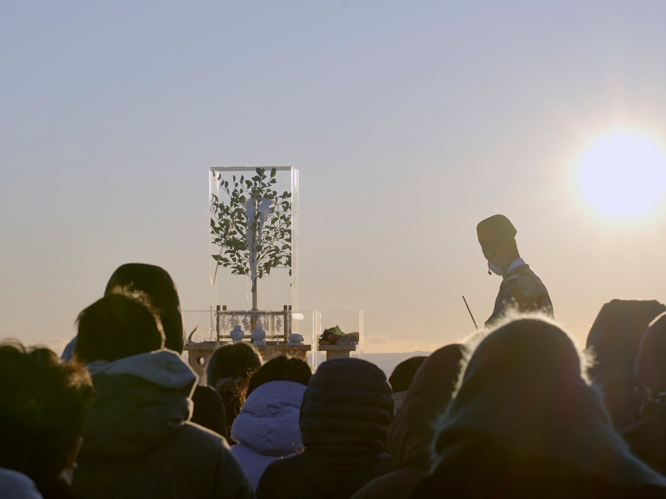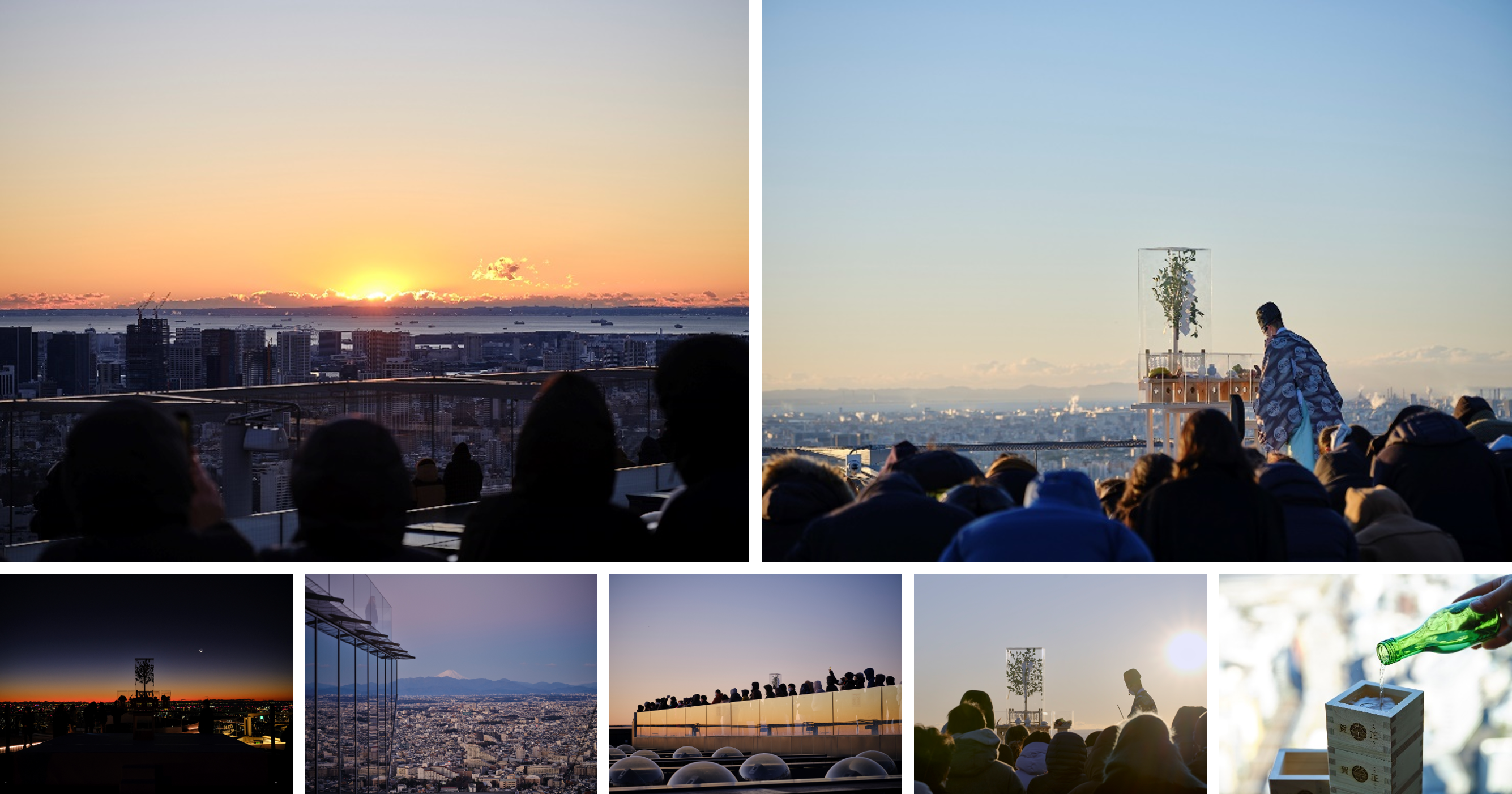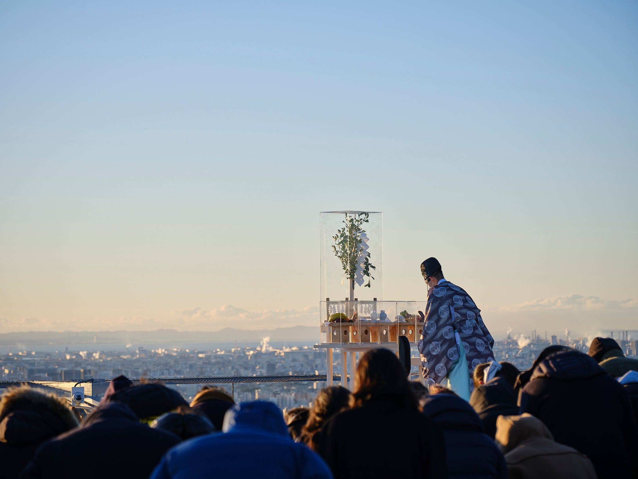 渋谷最高峰、地上229mに位置する本施設は、渋谷で最初に日の出を迎える場所でもあります。また、初日の出鑑賞だけではなく、屋上展望空間「SKY STAGE」に特別祭壇を設け、渋谷にある金王八幡宮の神主に斎主としてお越しいただき、年の初めに皆さまの幸せを祈願する神事「新春祈願」を執り行います。