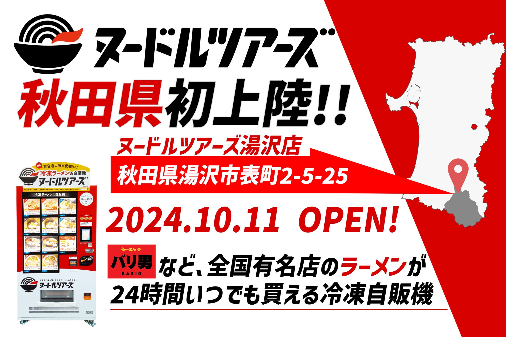 秋田県初設置!全国の有名店のラーメンが買える冷凍自販機『ヌードルツアーズ』、秋田県の湯沢市にて販売開始