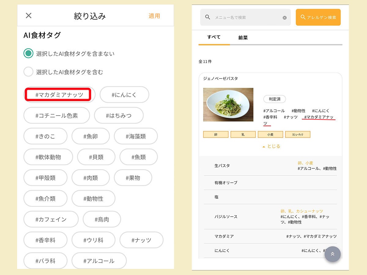 アレルギー管理サービスの「AI食材タグ」に追加。マカダミアナッツを含む加工食品やメニューが検索可能に