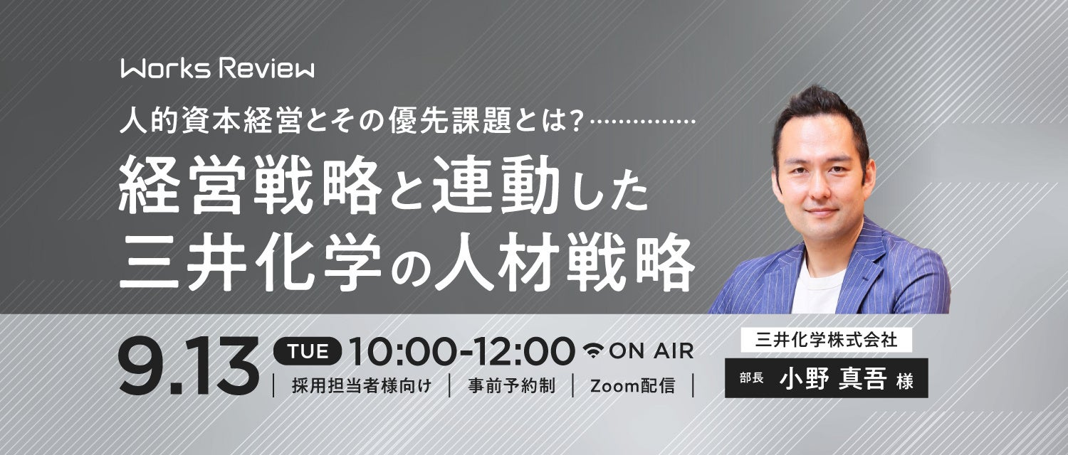 今回のWORKS REVIEWでは、既に人的資本経営の実践に着手されている三井化学株式会社にご登壇いただき、グローバル化における設計思想や、リアルな苦労経験等、「人的資本経営」実践へのグローバル人材マネジメントについてレビューします。