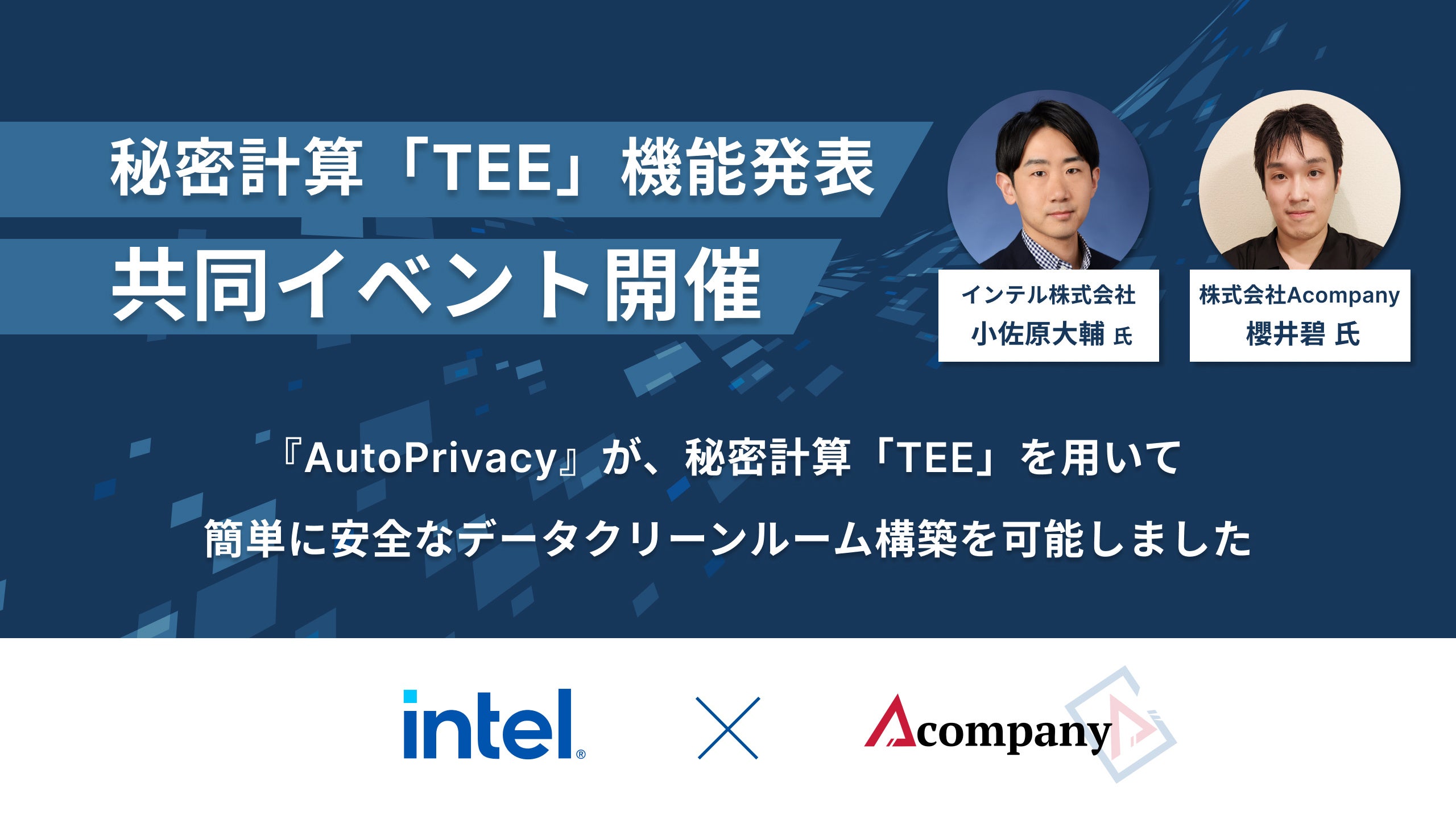 Acompany、秘密計算「TEE」機能発表と、記念してインテルと共同イベントを開催