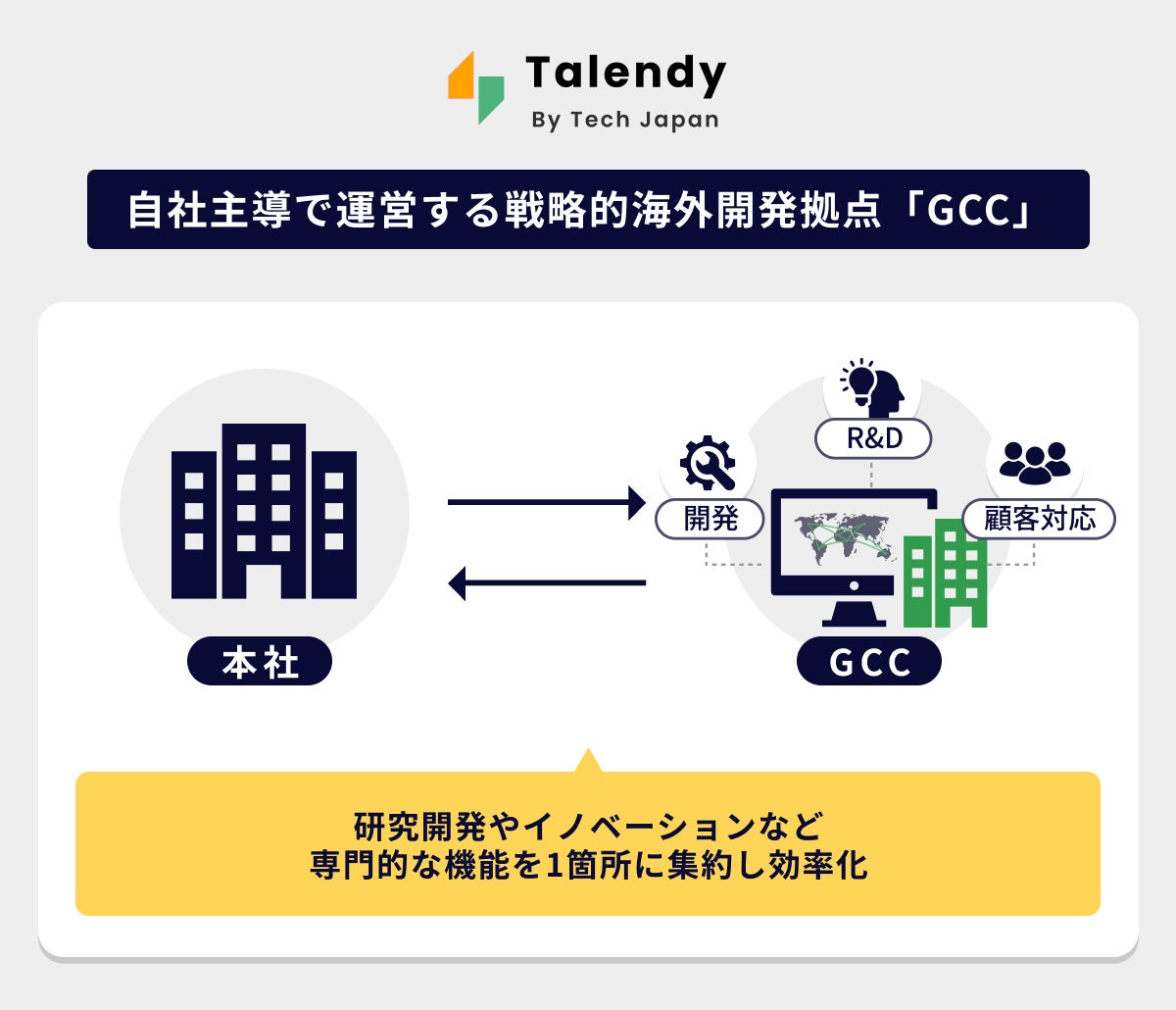 高度インド人材に特化したHRプラットフォーム「Talendy」を展開するTech Japan株式会社(本社:東京都、代表取締役:西山 直隆)は、日本企業がインドにおいて自社の戦略的開発拠点「グローバル・ケイパビリティ・センター(GCC)」を手軽に構築・運営できる新サービス「Talendy GCC」を正式にリリースいたします。 本サービスは、EOR(雇用代行)スキームと独自の採用データベースを活用することで、現地法人の設立や大規模な初期投資を不要とし、最短かつ最小リスクでインドの高度IT人材による自社開発チームの立ち上げを可能にします。