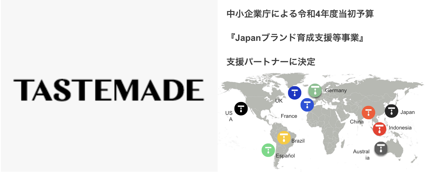 Tastemade Japan株式会社(本社:東京都渋谷区 代表取締役 夏目卓弥)が中小企業庁による令和4年度当初予算「JAPANブランド育成支援等事業」の支援パートナーに選定されたことをお知らせいたします。