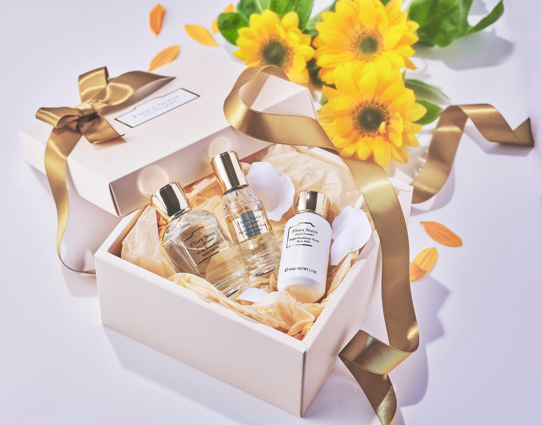 ・期間中、フローラノーティスで6,050円(税込)以上ご購入の方に「ブライトサンフラワー」の 2.5mLサンプルと限定オリジナルショッパーをお渡しいたします。