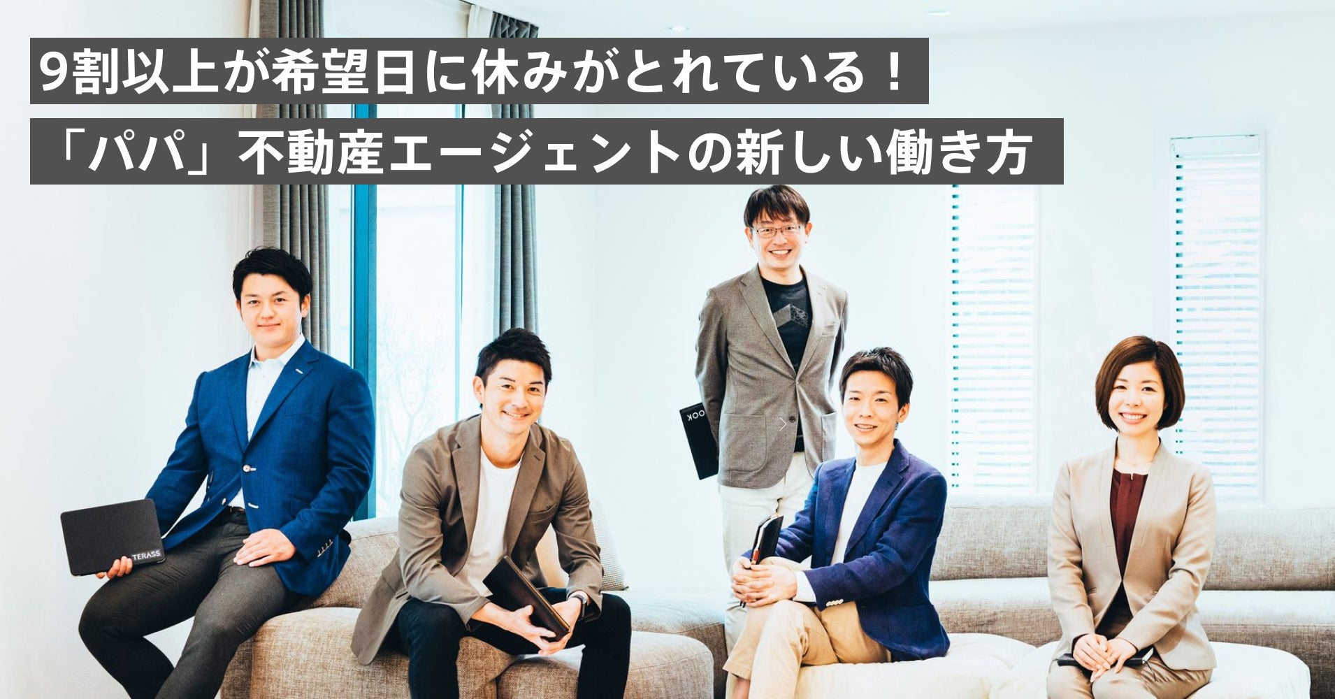 朝早くから夜遅くまで働き、男性の育休や土日祝を含む希望休がまだまだ取得しづらいと言われている不動産業界。そのような環境からTERASSに転職し、働き方を変えた結果、家族や子育て、時間の使い方に起きた変化について調査しました。