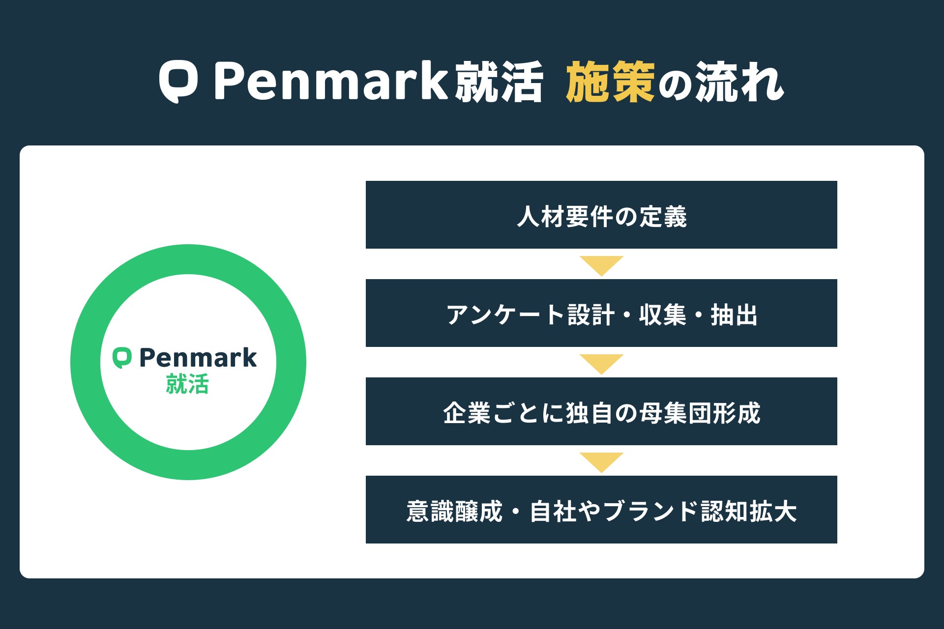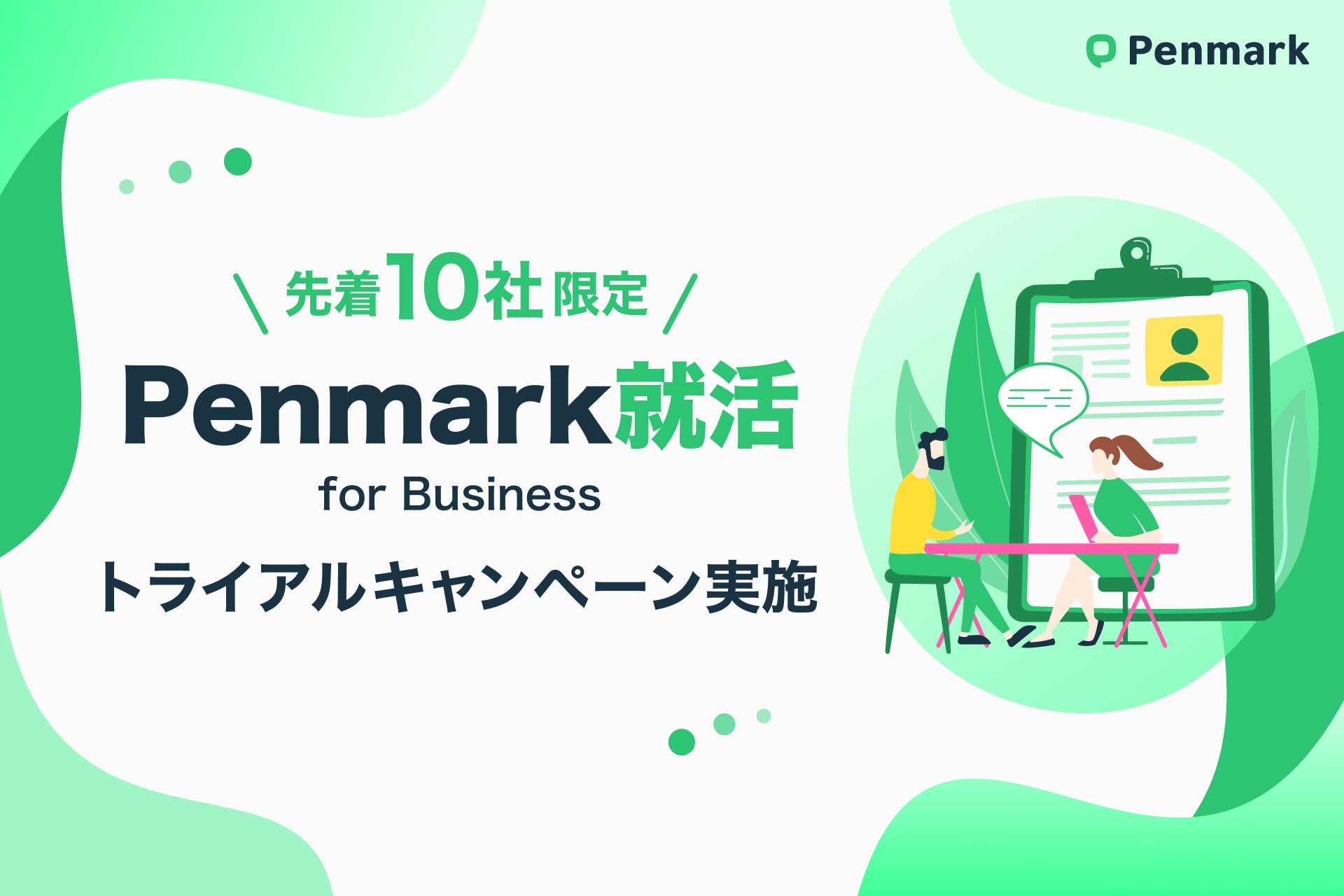 株式会社ペンマーク(本社:東京都目黒区、代表取締役:横山直明、以下ペンマーク)は、新卒採用市場における学生と企業の情報格差やマッチングの非効率性といった課題解決のため、当社の強みである“圧倒的な学生ユーザー数”と“学生の履修・アンケートデータ”を活用した、新卒採用支援サービス「Penmark就活 for Business」の提供開始をお知らせいたします。また、本サービスのローンチを記念して、先着10社限定のトライアルキャンペーンを実施いたします。