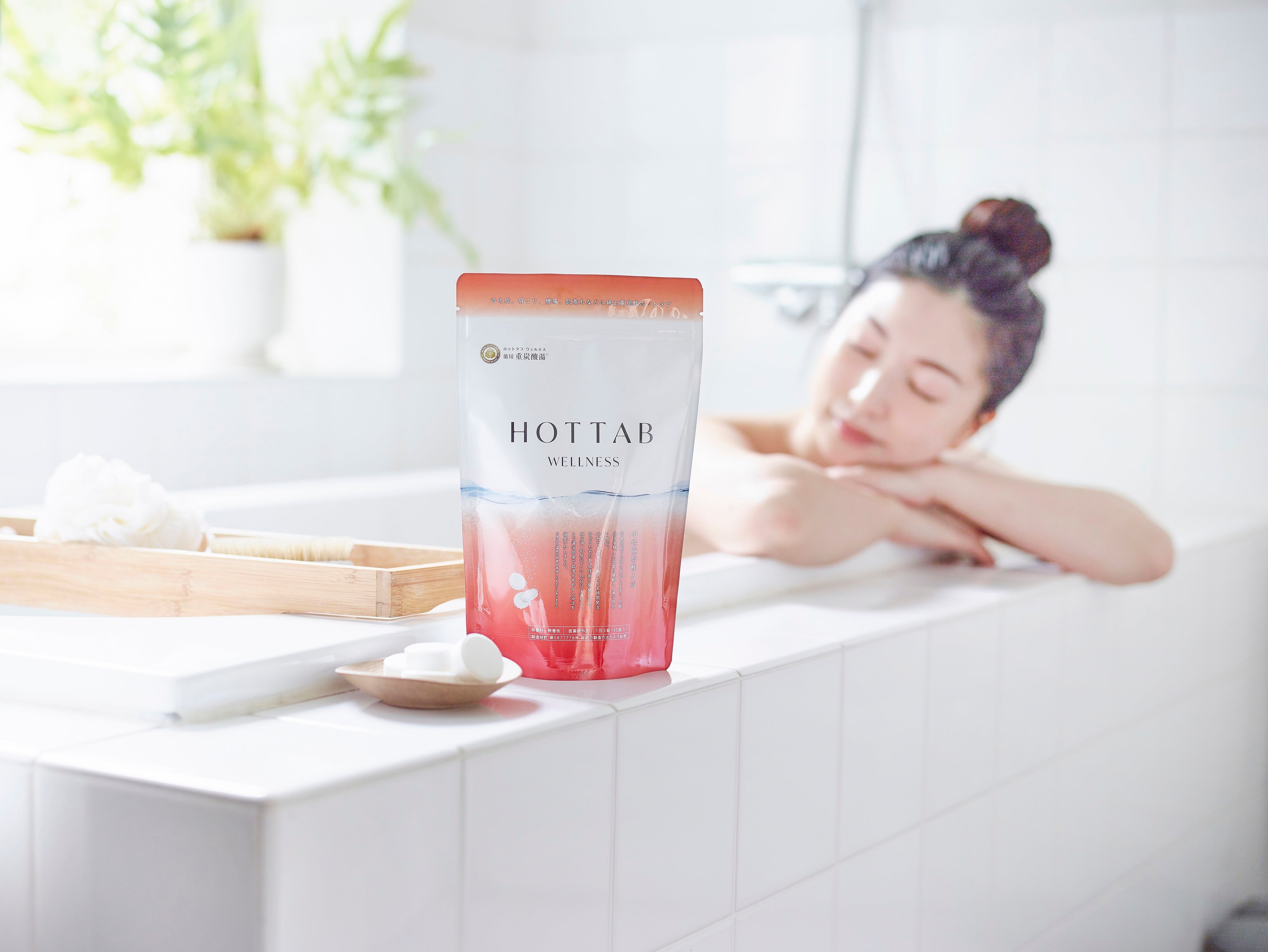 重炭酸の溶けた41℃以下のぬるめのお湯に30分以上ゆっくり長湯する“重炭酸入浴法”を提案いたします。重炭酸入浴剤【HOT TAB】をいつものお風呂のお湯に入れるだけ。