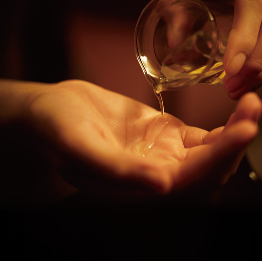 植物オイルを肌になじみやすいように人肌に温め、肌や身体の状態を繊細に感じ取るために、ジュリークはオールハンドにこだわります。上質なエッセンシャルオイル等が華やかに香り立ち、心地よいタッチのトリートを提供します。