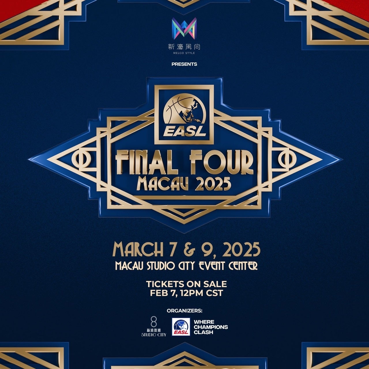 東アジアのバスケットボール王者を決めるEASL東アジアスーパーリーグ (以下EASL)のFINAL4 2025が、2025年3月7日から9日にかけてマカオ特別行政区のスタジオシティで開催されることが決定致しました。
