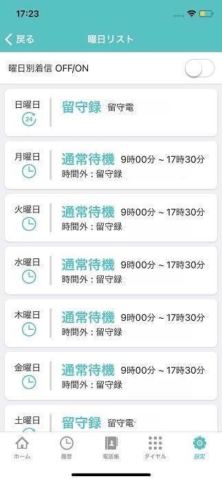 これまで営業時間外に留守電に切り替えを行う際は、アプリのホーム画面にて着信方法を手動で変更する必要がありました。今回の曜日別着信機能を利用すれば、指定した曜日と時間帯で着信方法を自動的に切り替えることがでるようになります。