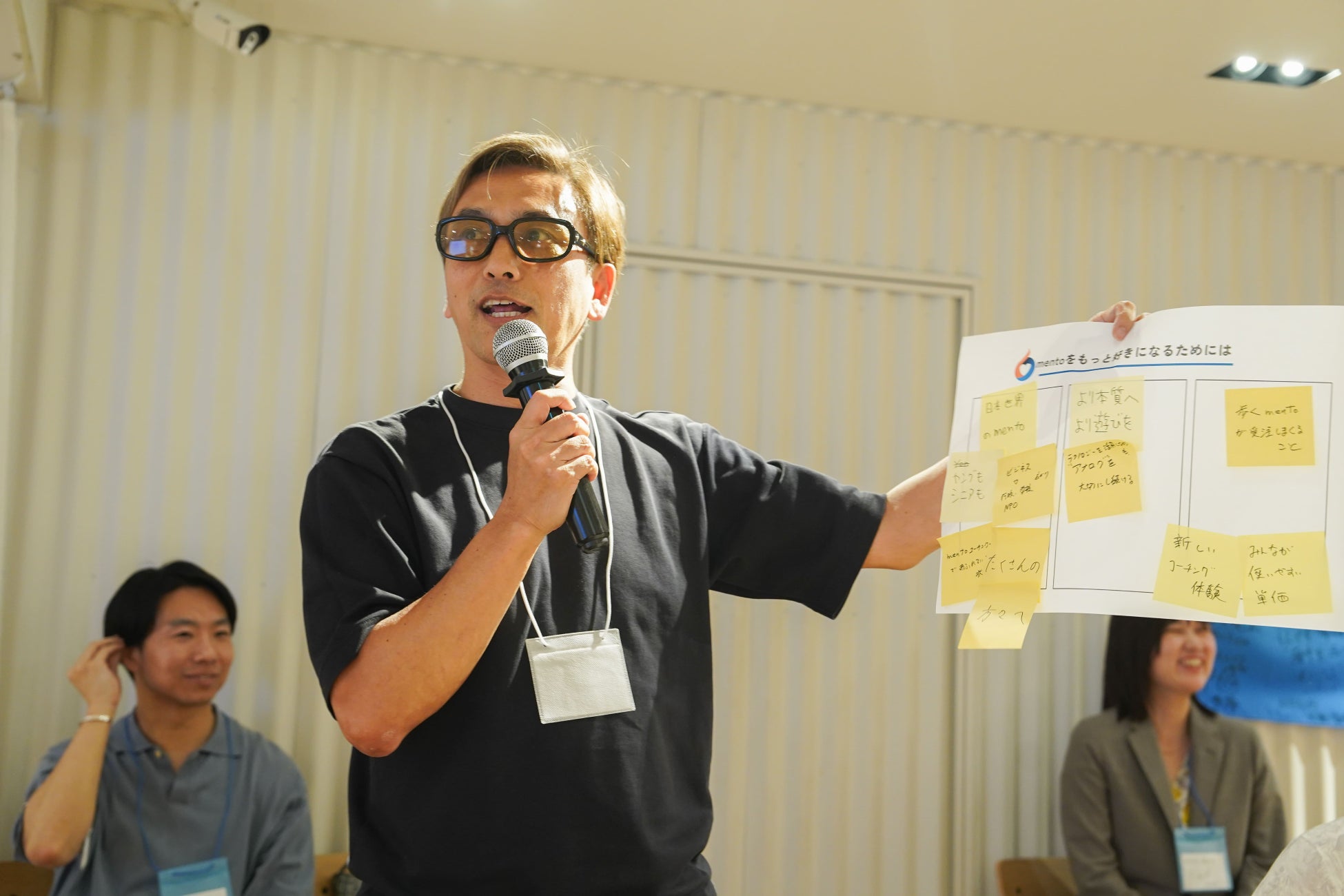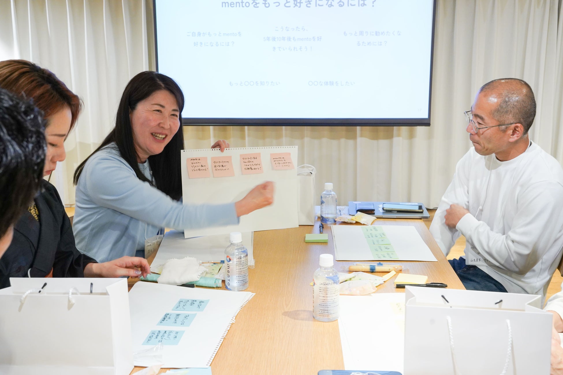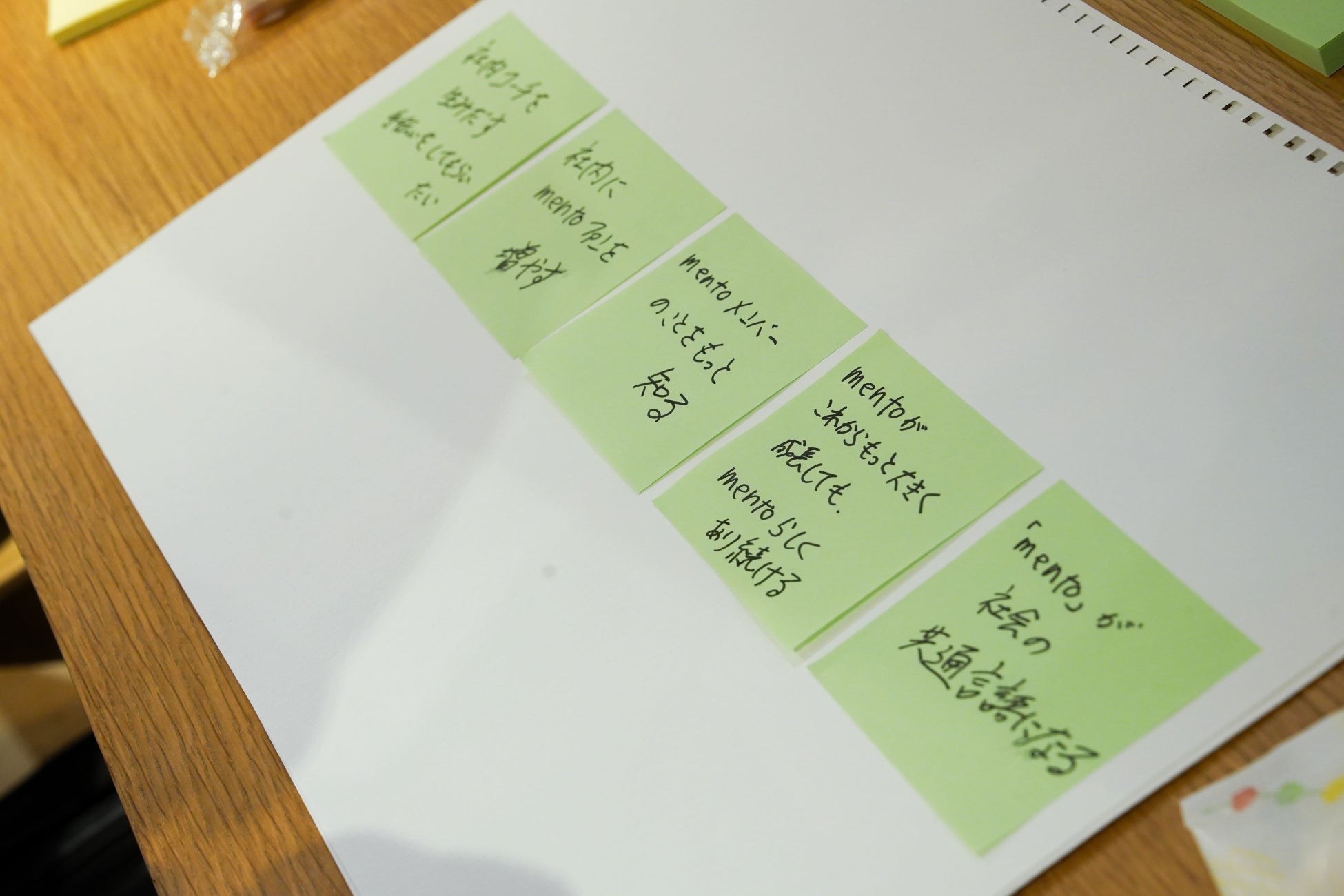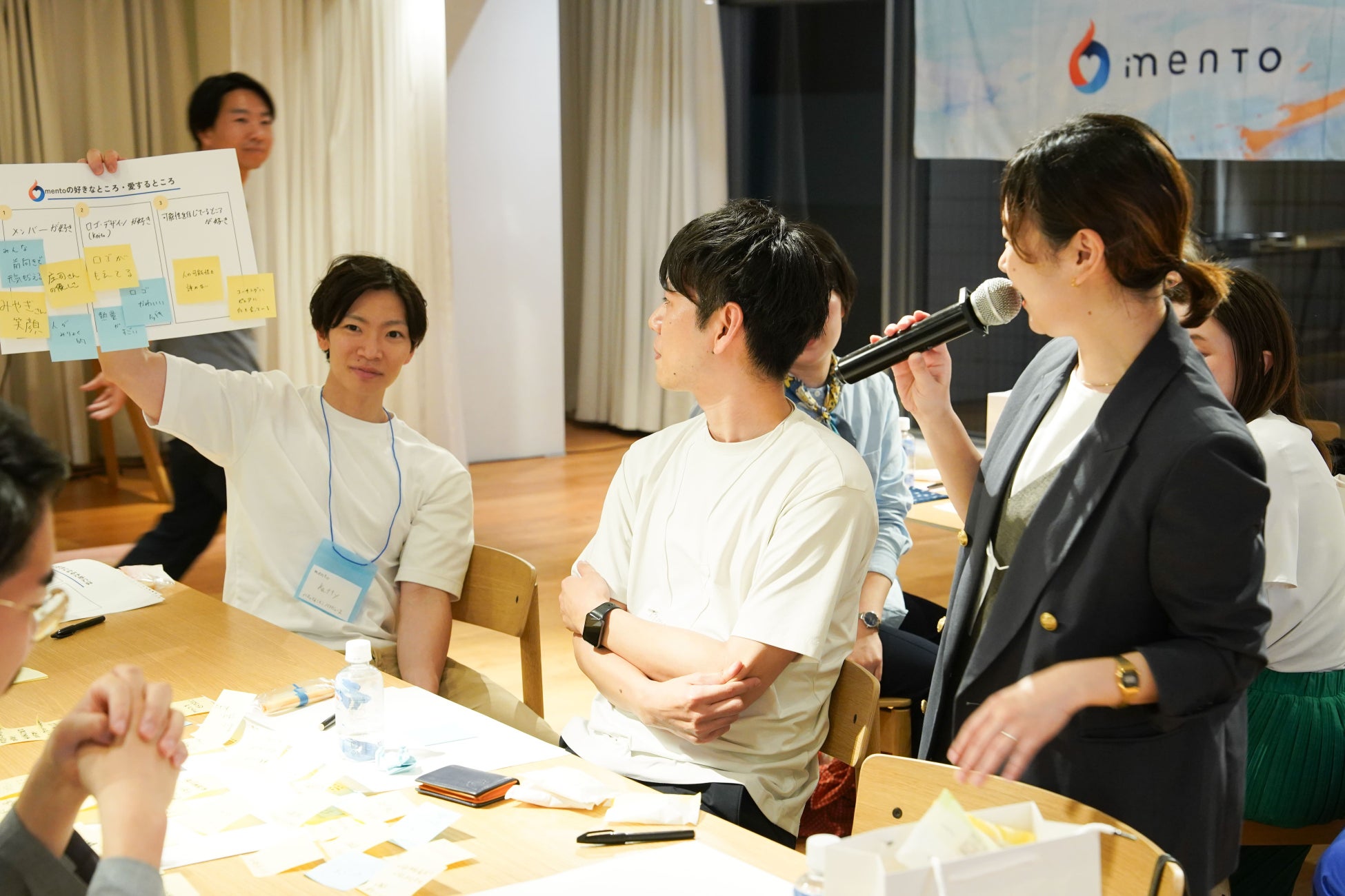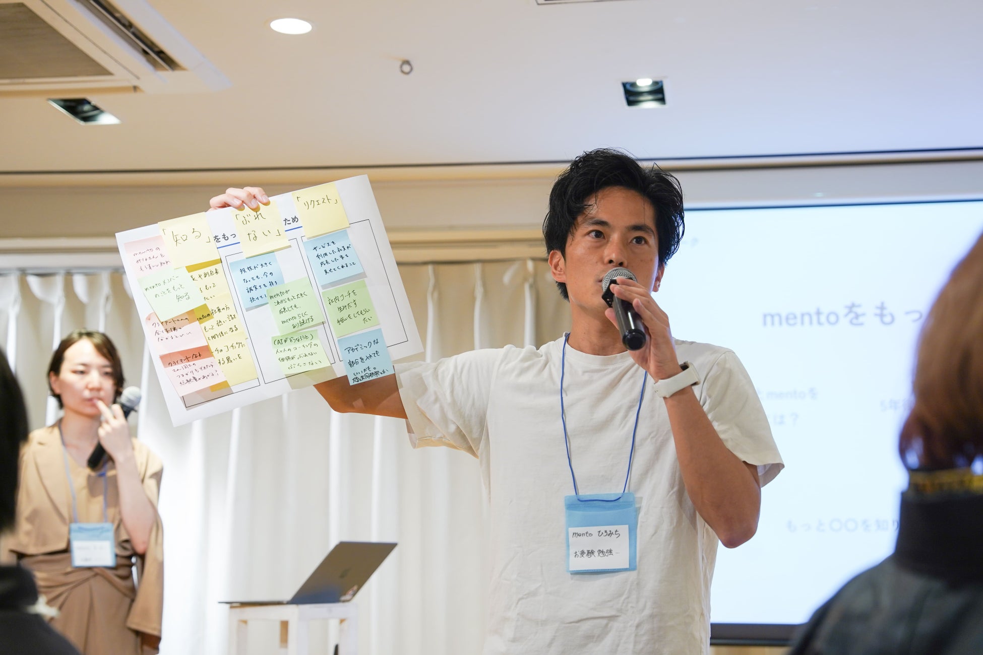 「思い返すと、まだ一人で事業を立ち上げていたときに『サービス名何にしようかな』と悩んで選んだのがmentoという名前でした。当時は誰にも呼んでもらえないかもしれない、と不安に思っていたことを覚えています。それが今日、ここに集まってくれた皆さんに当たり前のように『mento』と呼んでもらえて、mentoの好きなところやもっと好きになるためのアイデアを話してくださり、あのときの自分が救われたなと思いました。さらに『mento』を日本や社会の共通言語にしていくという大きな期待を感じたので、これからも皆さんと一緒に大きく成長していけたらと思っています」
