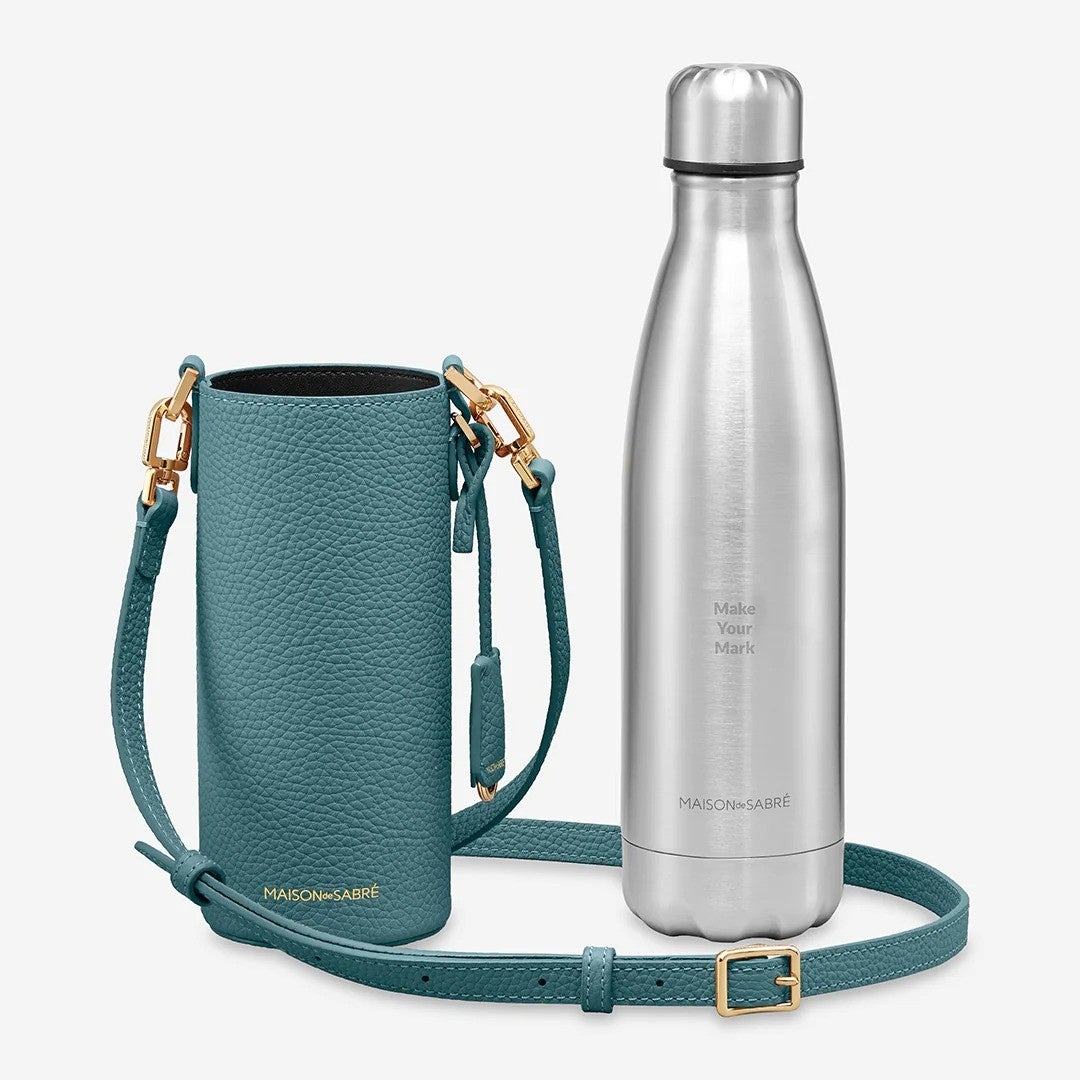 ステンレス製の500mlボトルとストラップ付きボトルホルダーがセットになった水筒。ボトルにはさりげなくMake Your Markが印字され、付属のキーホルダーにイニシャル刻印も可能。肩からかけて持ち運べば、まるでバッグのようなおしゃれに。オーストラリアで人気の型を取り入れた、日本にはあまりないユニークなウォーターボトル。