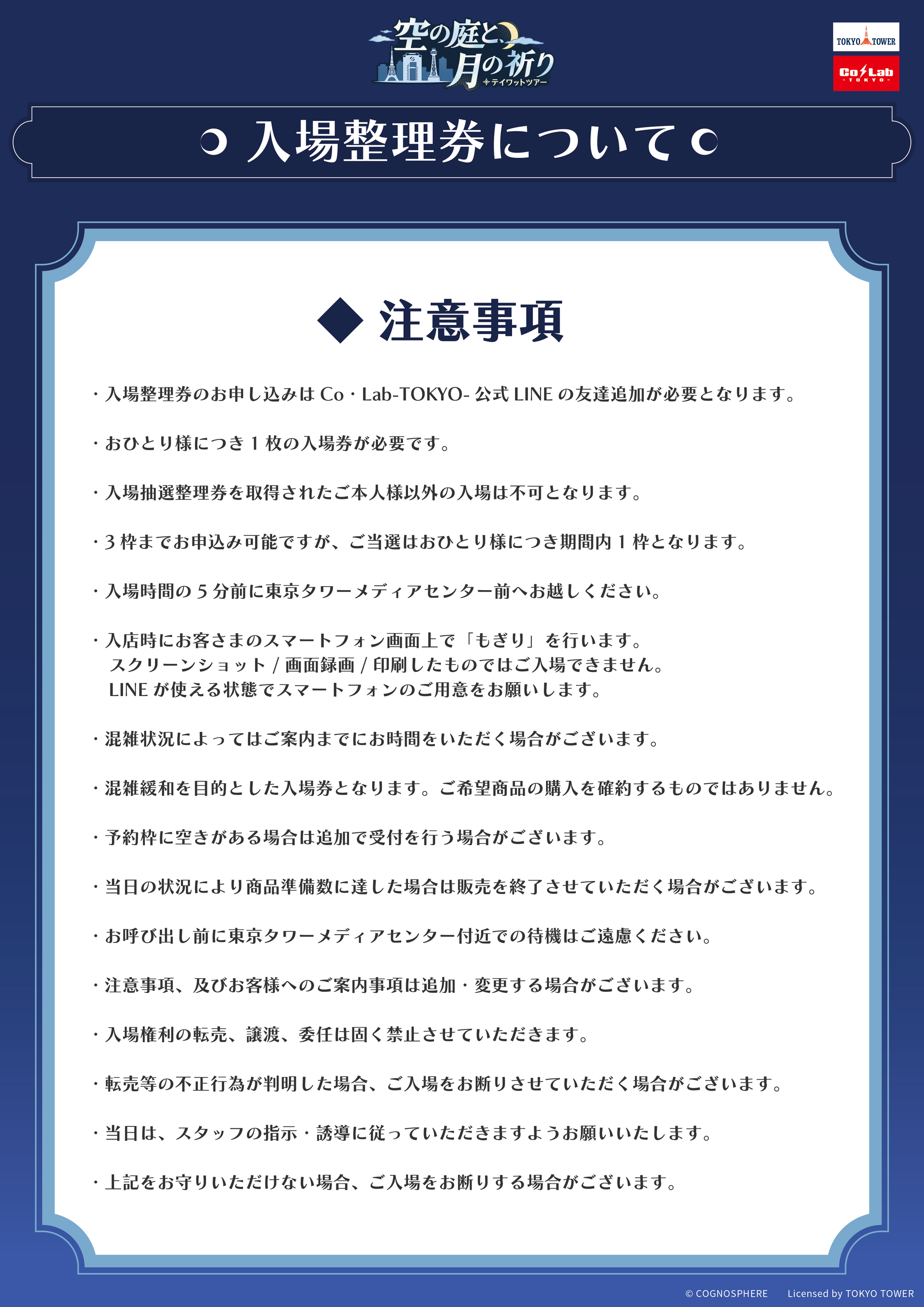 1月16日(金)〜1月18日(日)の期間は混雑緩和の為、事前予約整理券がないと入店できない時間帯がございますのでご注意ください。整理券配布についてはCoLab-TOKYO-公式HPの整理券案内ページにてご確認ください。