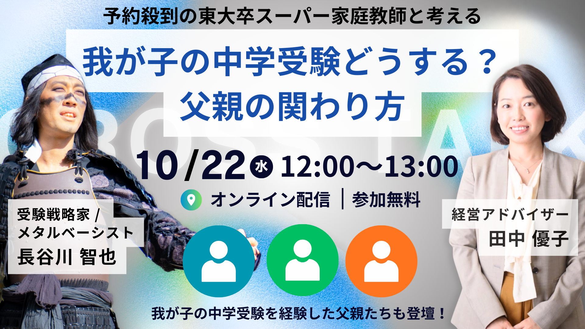 予約殺到の東大卒スーパー家庭教師と考える「中学受験における父親の関わり方」【10/22(水)オンライン開催】