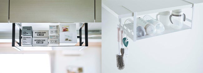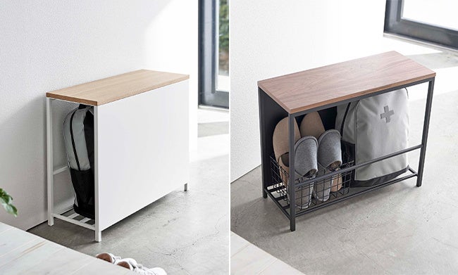 防災バッグを収納できるベンチや、戸棚下に設置できる収納ラックが発売中です。