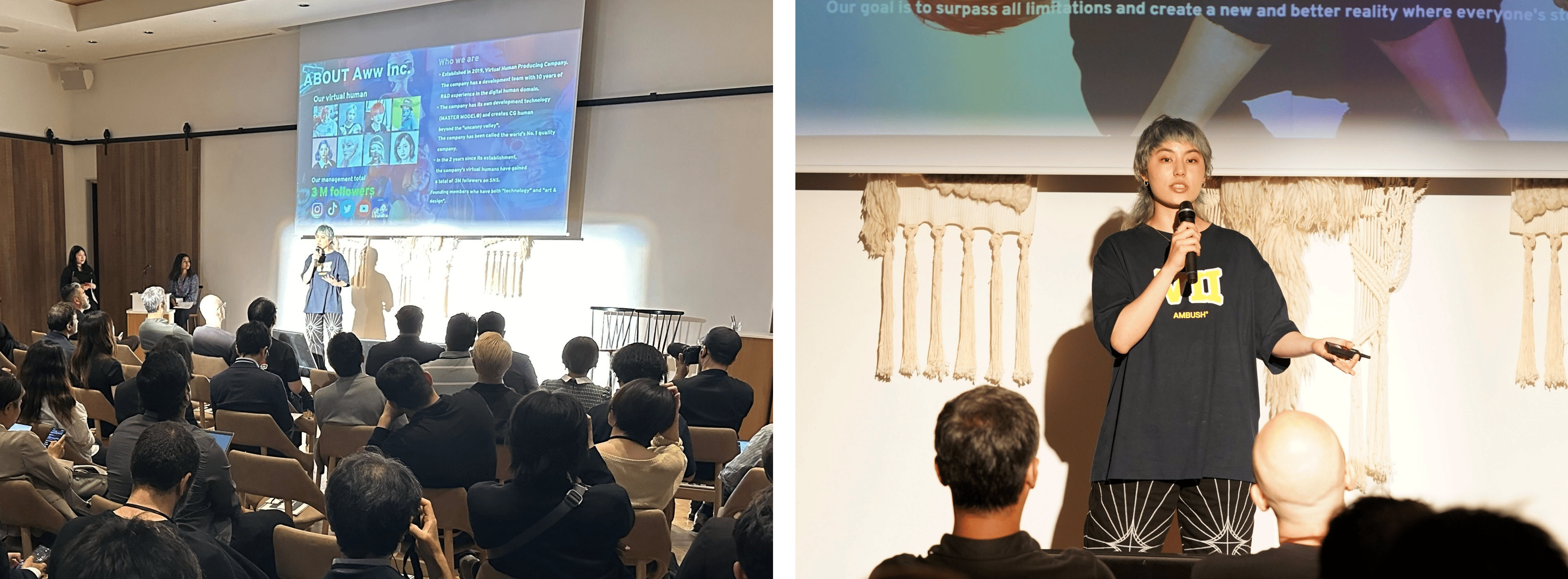 AwwではMASTER MODEL🄬というオリジナルテクノロジーを使って完全にオリジナルのバーチャルヒューマンを制作しています。バーチャルヒューマンのプロデューサー沙羅はイベント内で「ストーリーテリングの革命を起こしたい」と述べました。現在当社がプロデュースするバーチャルヒューマンの中でも、ポルシェ、IKEA、BMWなど国内外問わず様々な企業に起用されているimmaは、この"ストーリーテリングの革命"を体現しています。彼女はバーチャルヒューマンのため、実在はしないのですが、人間と同じようにSNSで自分の生活を発信しており、現在約100万人以上のフォロワーを抱えインフルエンサーとして活動しています。また活動の中では、日本のカルチャーだけではなく、気候変動やBlack Lives Matterなど、社会的な出来事についての発信やイベントへの登壇といったバーチャルとリアル世界の垣根を超えたストーリーテリングの革命を起こしています。