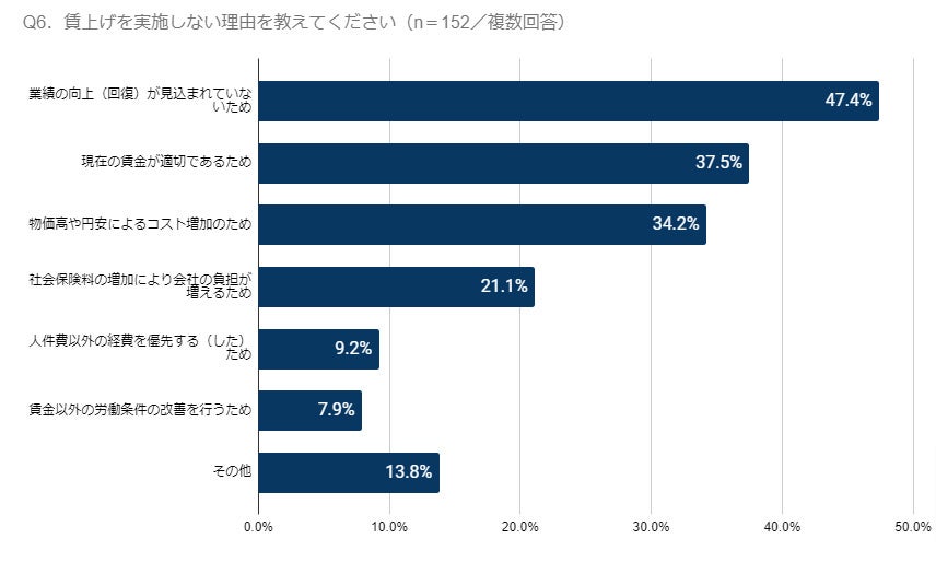 Q1で賃上げを実施する予定が「ない」と回答した事業所にも、その理由について質問しました(n=152)。