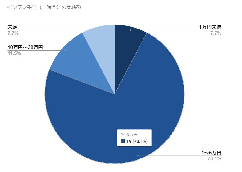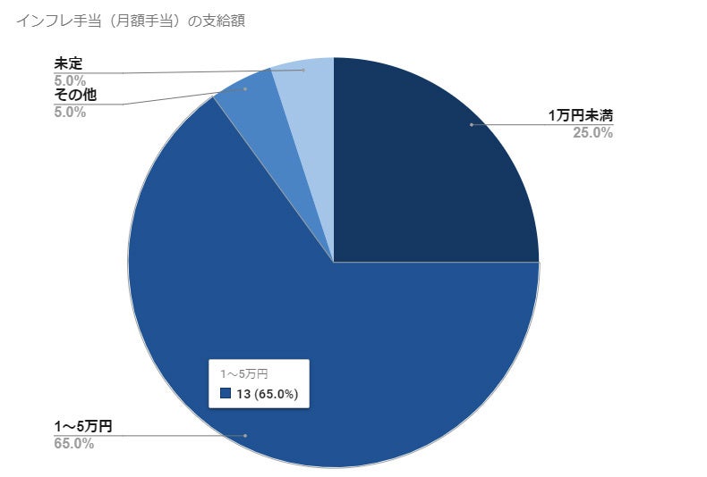 インフレ手当の支給額は、一時金・月額手当ともに「1~5万円」が最多