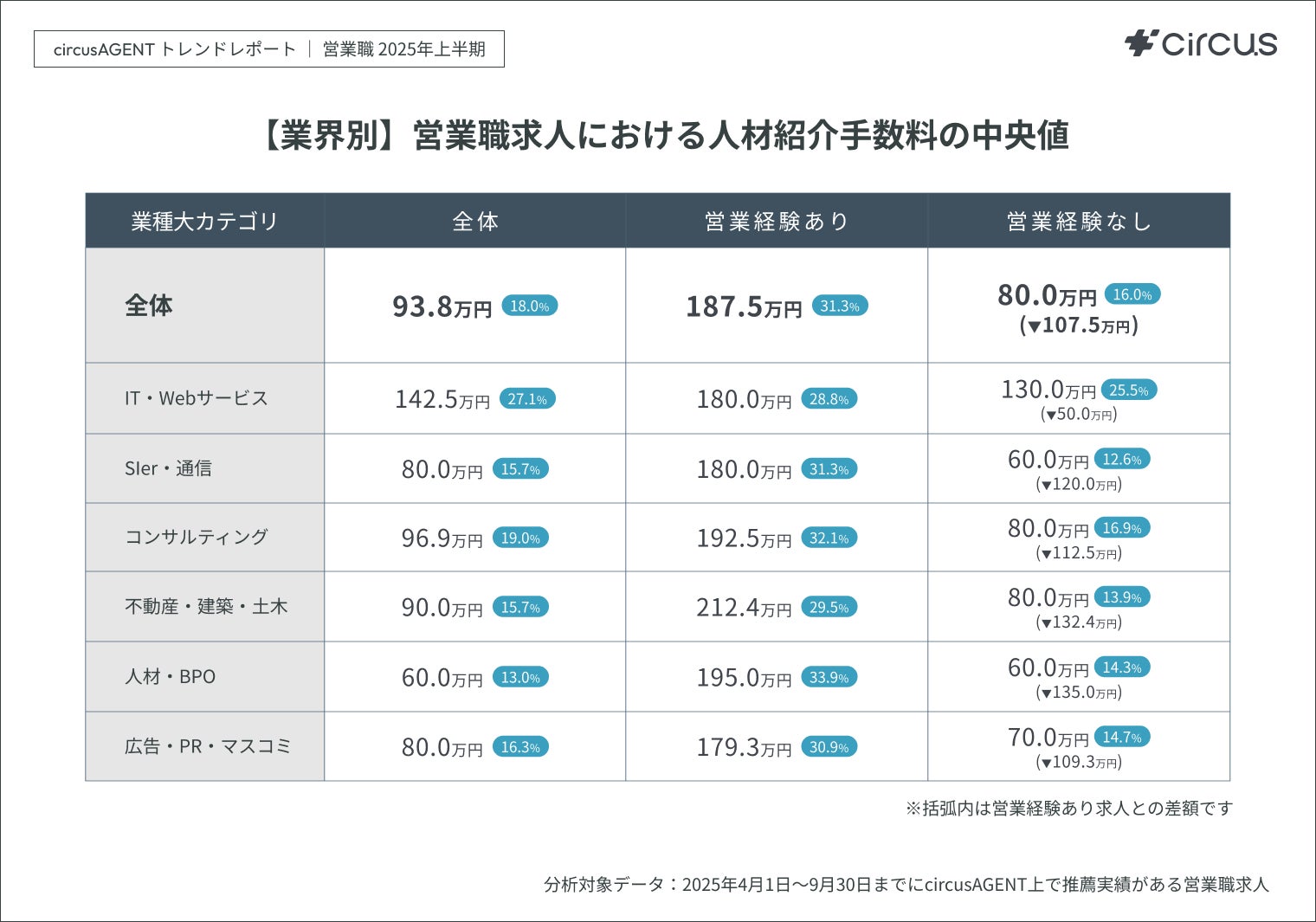 分析対象 circusAGENT上で2025年4月1日~9月30日の期間内に推薦実績がある営業職求人