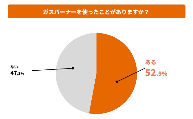 最初に、ガスバーナーを使用したことがあるか聞いてみたところ、52.9%が「はい」と回答しました。約半数が使用経験を持っており、ガスバーナーが一般家庭にも普及していることが分かります。