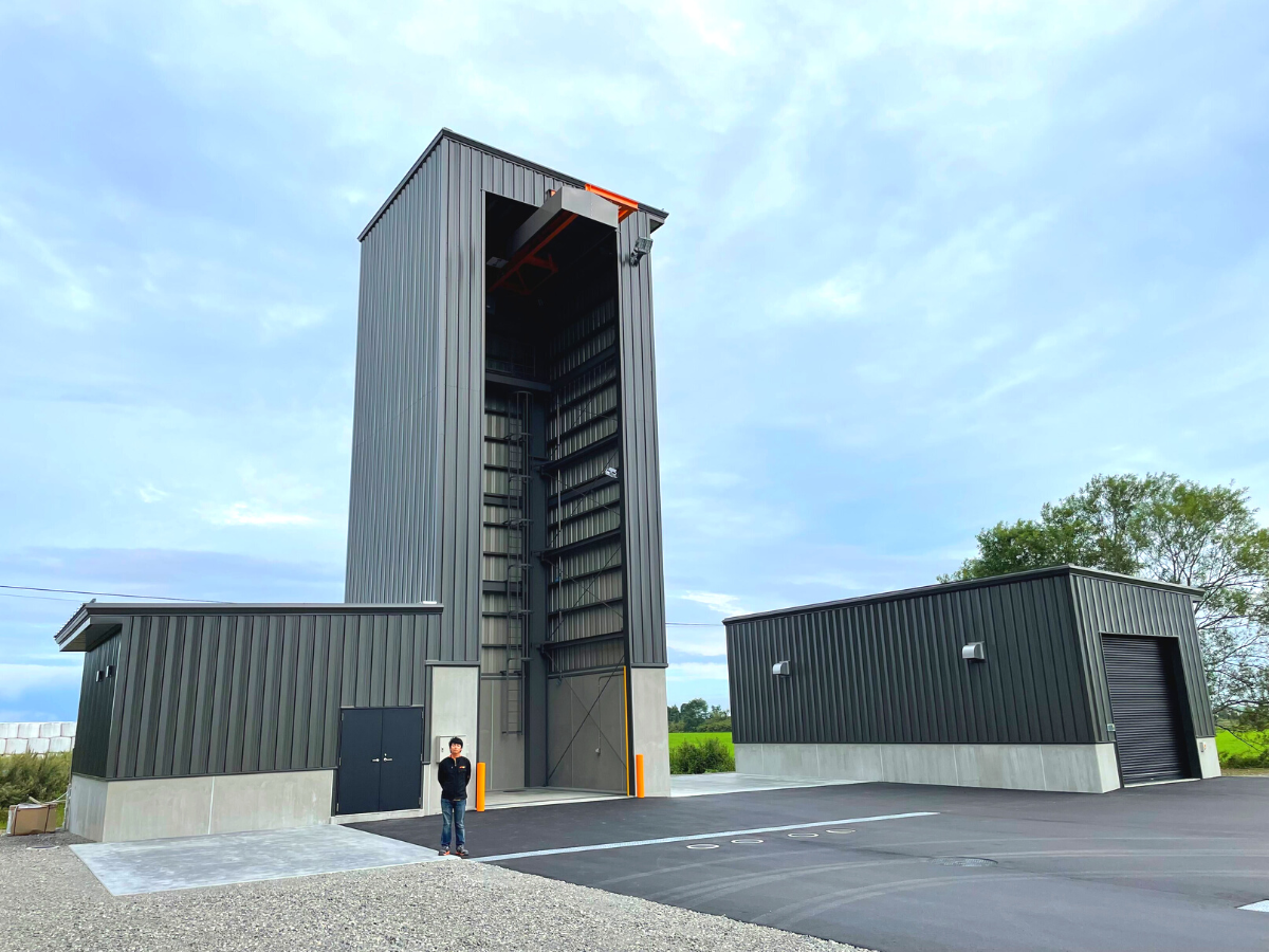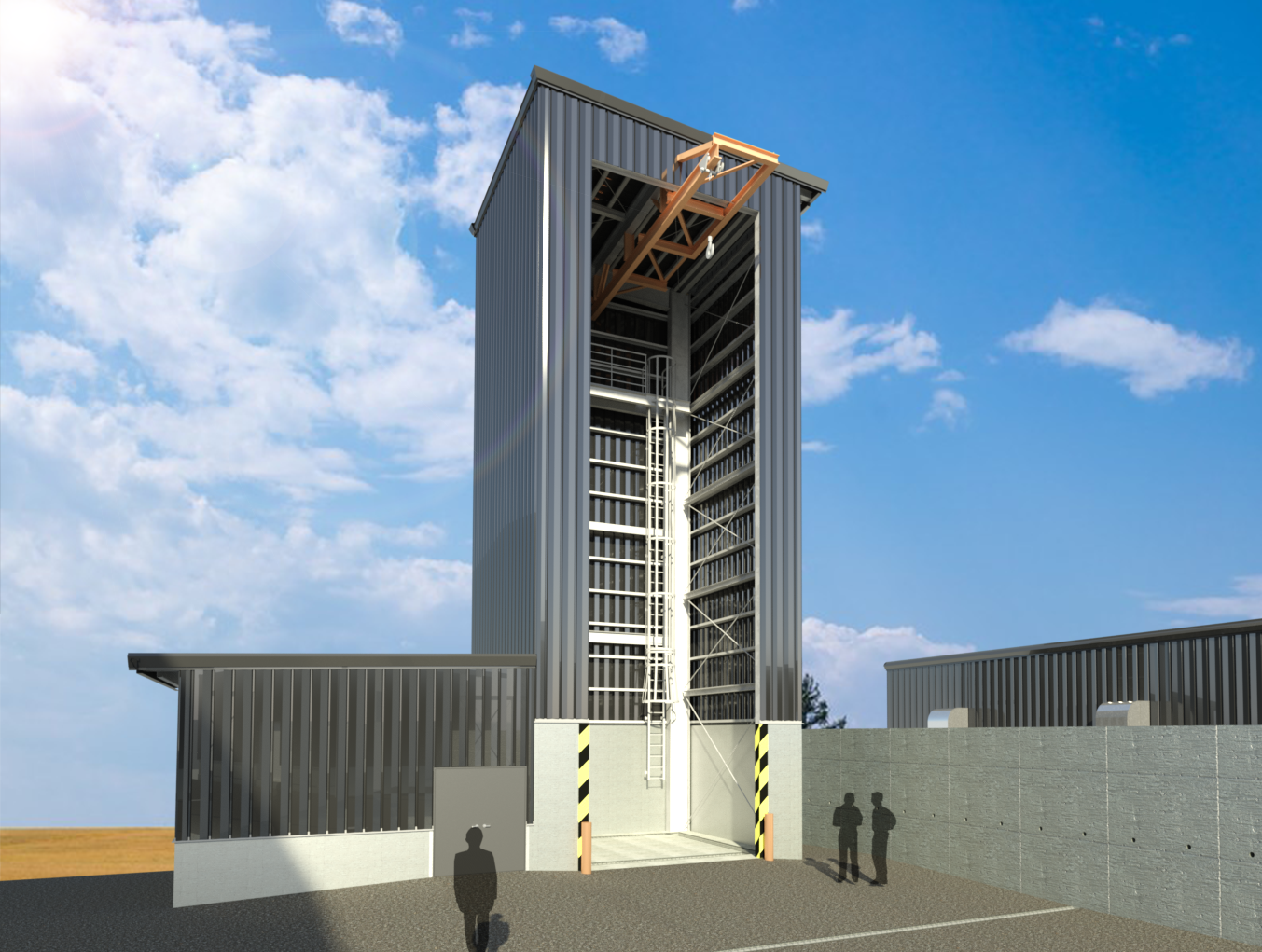 ロケットのタンクは約7メートルの大きさとなり、ぶら下げて試験を行うため、建築パースのような縦長の大きな建物になります。