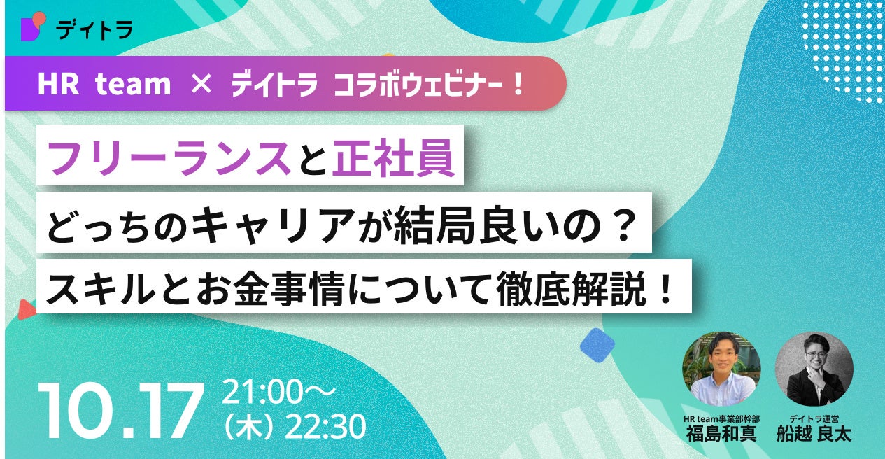 株式会社デイトラ(本社:東京都豊島区東池袋、代表:大滝昇平、以下「デイトラ」)と株式会社HR team(本社:東京都渋谷区円山町、代表:白倉貴之、以下「HR team」)は、IT人材育成と就職支援の連携を強化するため業務提携を発表しました。この提携により、デイトラのオンラインスクールでWeb開発スキルを習得した受講生が、HR teamの転職支援サービス「アゲルキャリア」を通じて、手厚い就職支援を受けられるようになります。10月17日には、未経験者向けのIT業界転職セミナーを共同開催し、両社のサービスを活用したキャリアアップ支援を開始します。この提携は、深刻化するIT人材不足に対応し、新たなキャリアを目指す人々を支援する画期的な取り組みとなります。