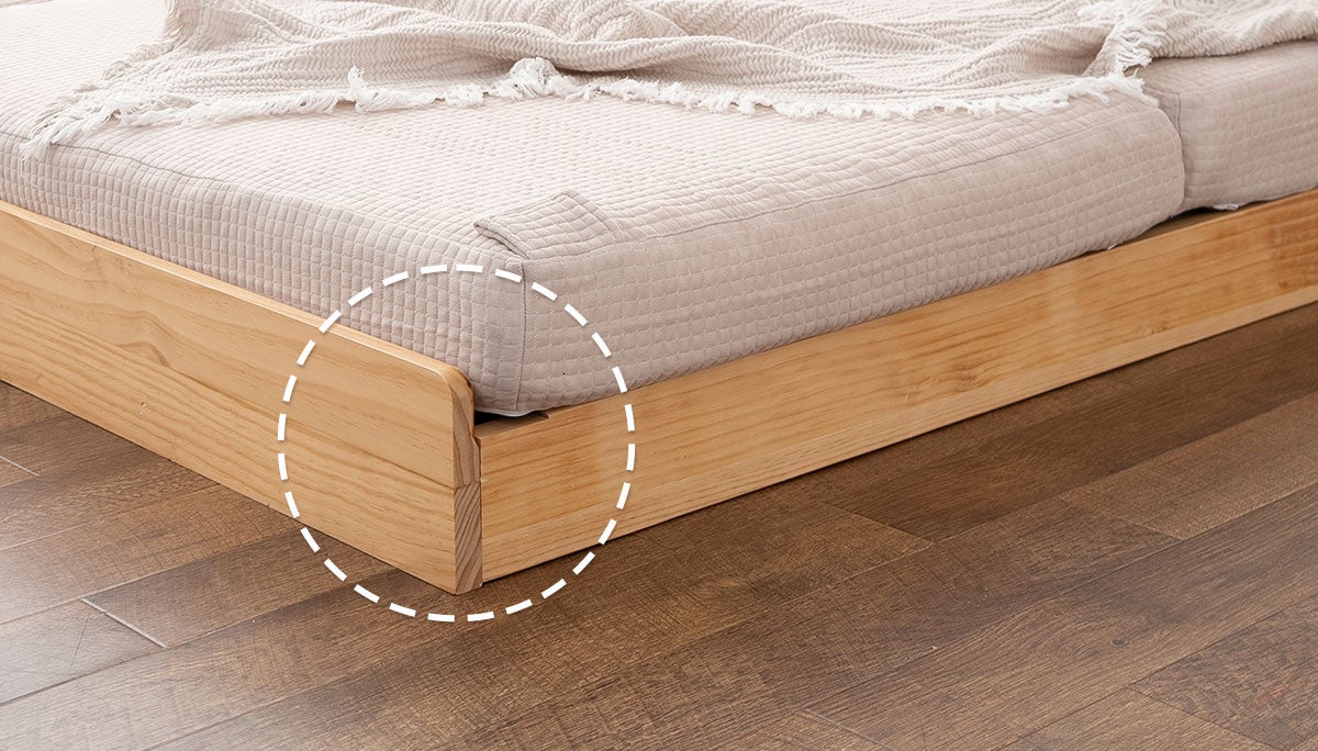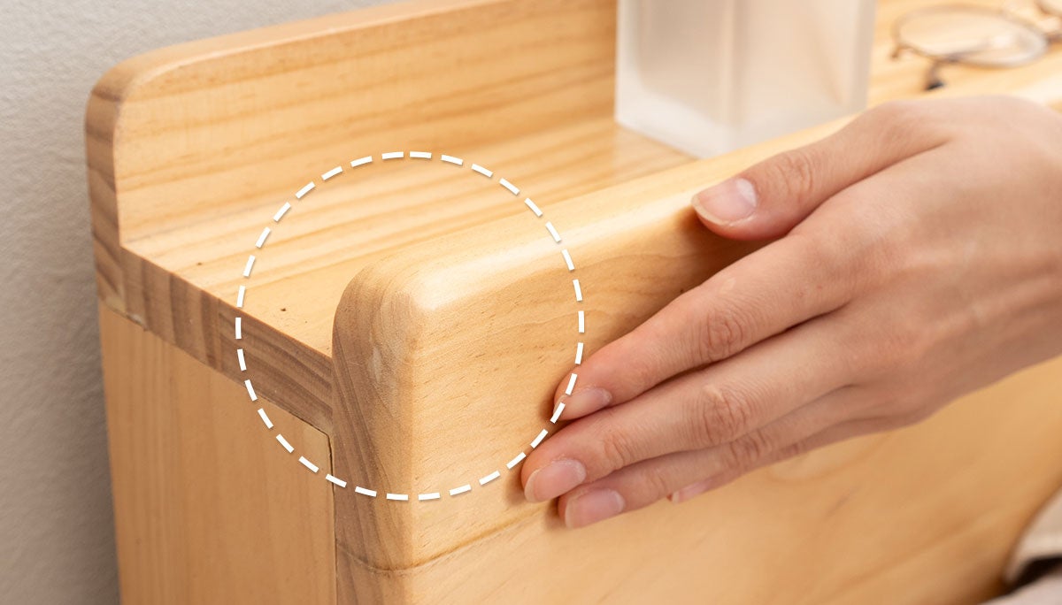 ヘッドボードとフットボードには、角を丸く加工したR形状を採用。小さなお子さまにも安心して使用いただけるよう配慮しました。