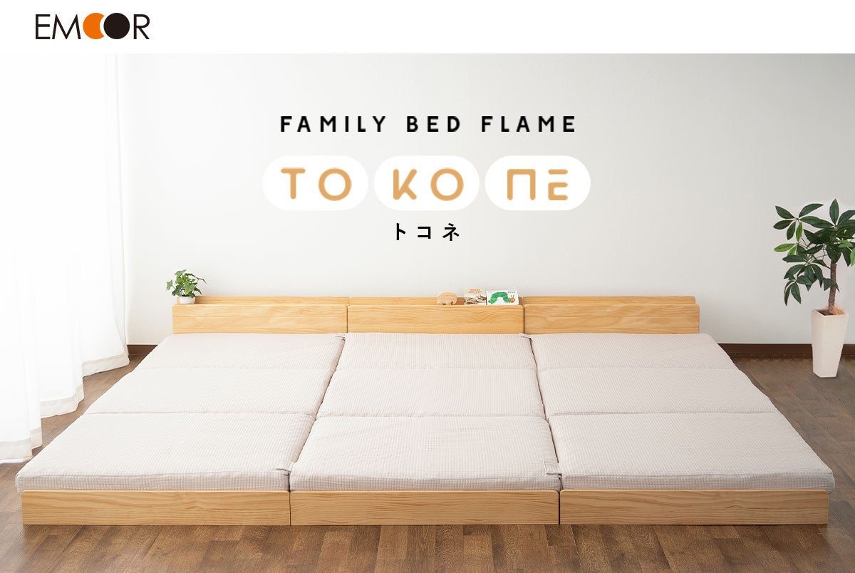寝室インテリアのEC事業を展開する株式会社エムール(東京都立川市:代表取締役 高橋 幸司)は、2024年9月26日より、生活の変化に合わせて連結・分離できる折りたたみベッドフレーム『TOKONE- トコネ/ファミリーベッドフレーム』の先行予約販売を開始しました。家族の成長に合させて買い替えが大変な家具に着目し、形を変えて永く使える家具を設計しました。