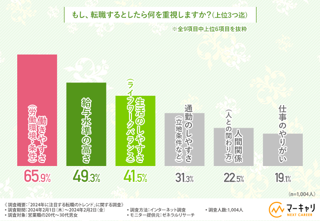 転職の軸は「働きやすさ」「給与水準の高さ」「ライフワークバランス」