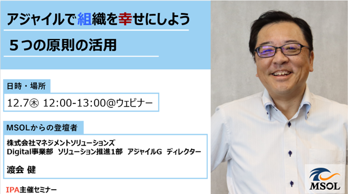 12月7日開催のIPA主催ウェビナー「アジャイルで組織を幸せにしよう:5つの原則の活用」にMSOL渡会登壇