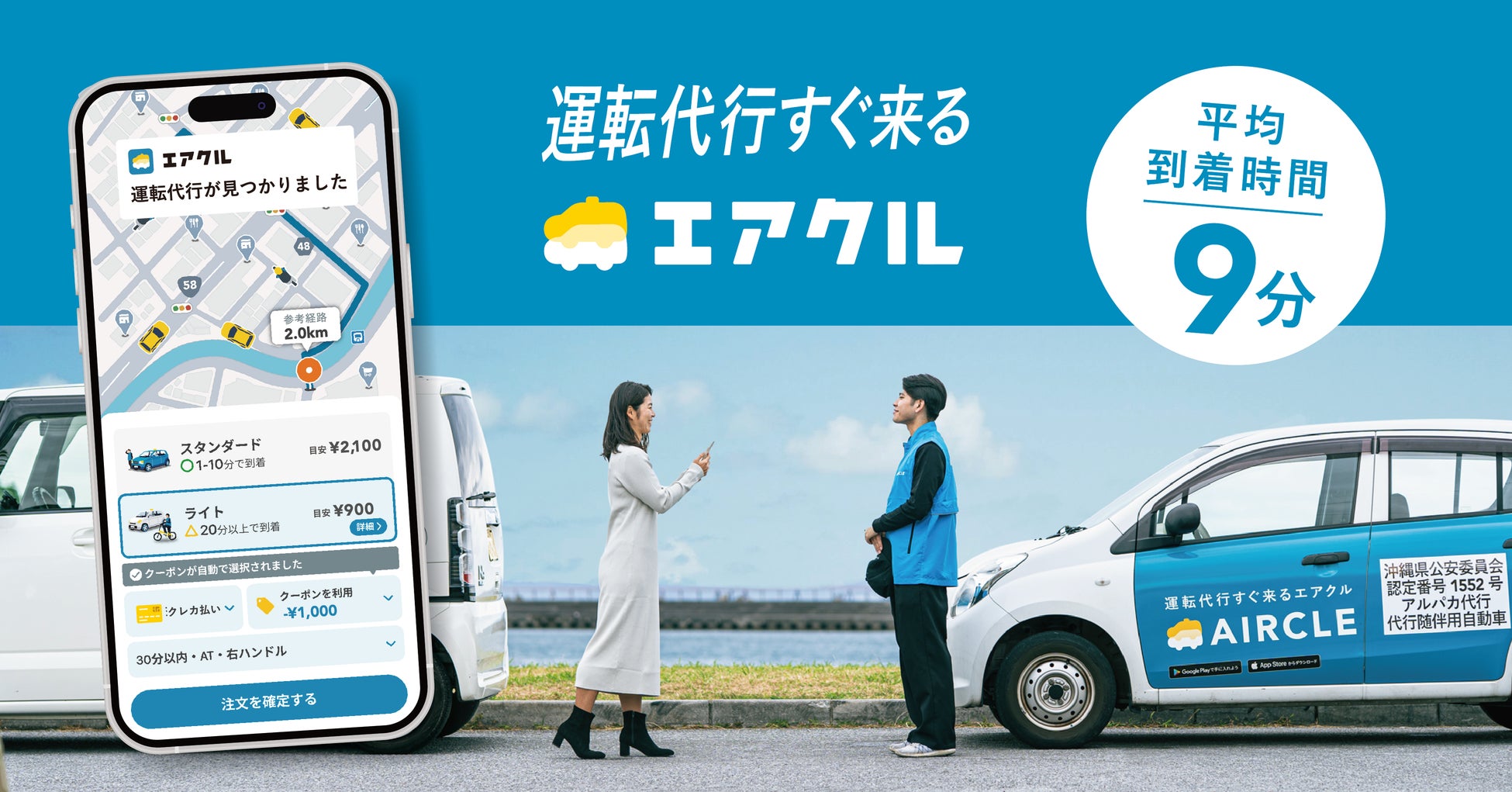 アルパカラボは、運転代行配車プラットフォーム「エアクル」を開発・運営し、沖縄県を起点に全国8エリアで展開しています。