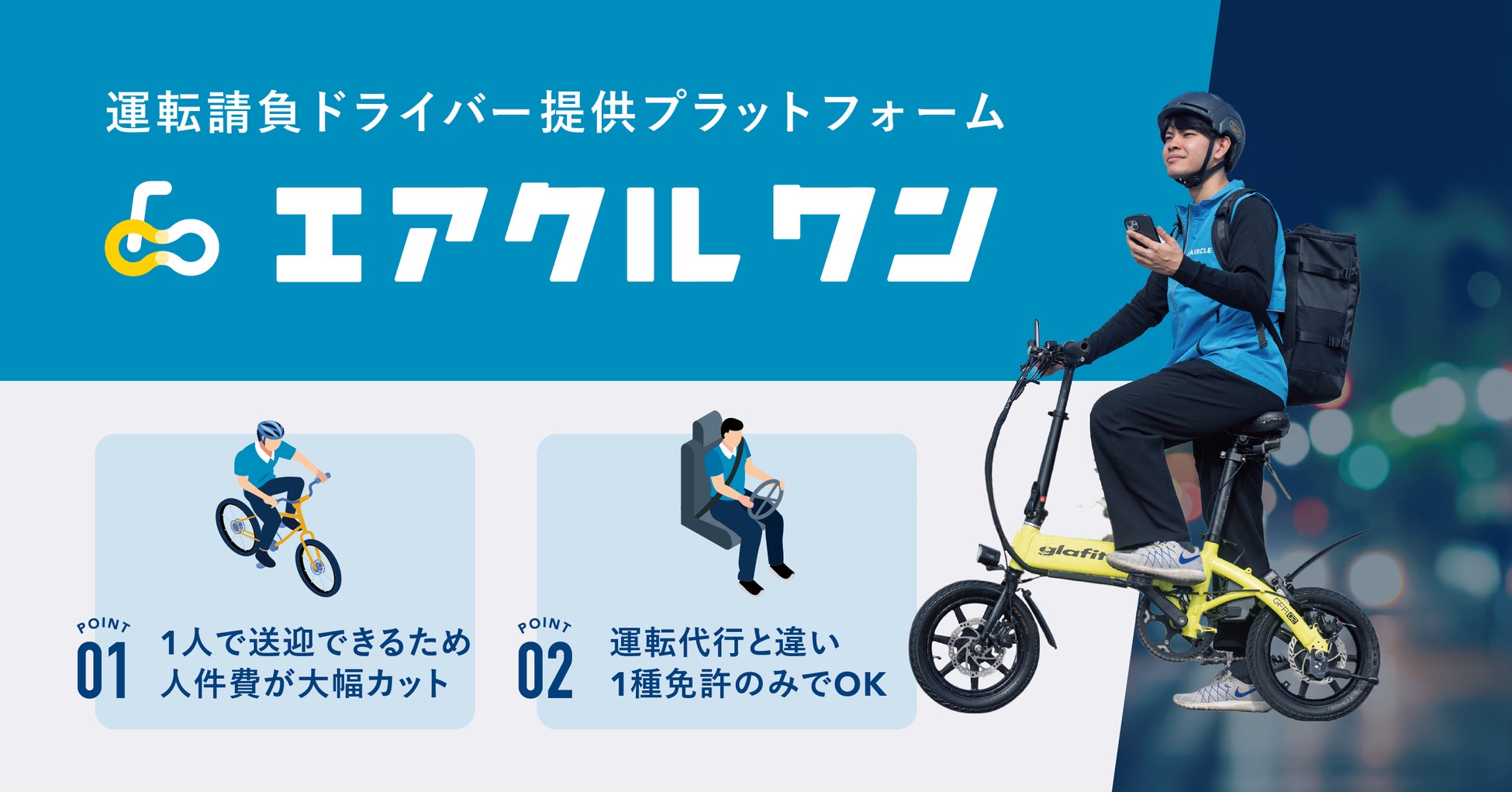エアクルワンは、普通自動車第一種運転免許保持のドライバー1名のみで運転代行と同様のサービスを提供できる「運転請負業」により、運転代行事業者が不足する地域に一般企業が参入し、ドライバー不足の解消に貢献しています。
