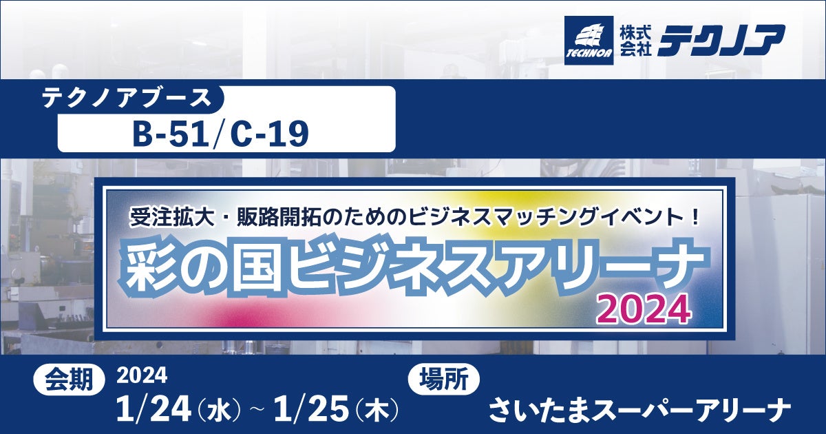 株式会社テクノア(本社:岐阜県岐阜市、代表取締役:山﨑 耕治、以下:テクノア)は、1月24日~25日に さいたまスーパーアリーナ で開催される「彩の国ビジネスアリーナ2024」 に出展いたします。