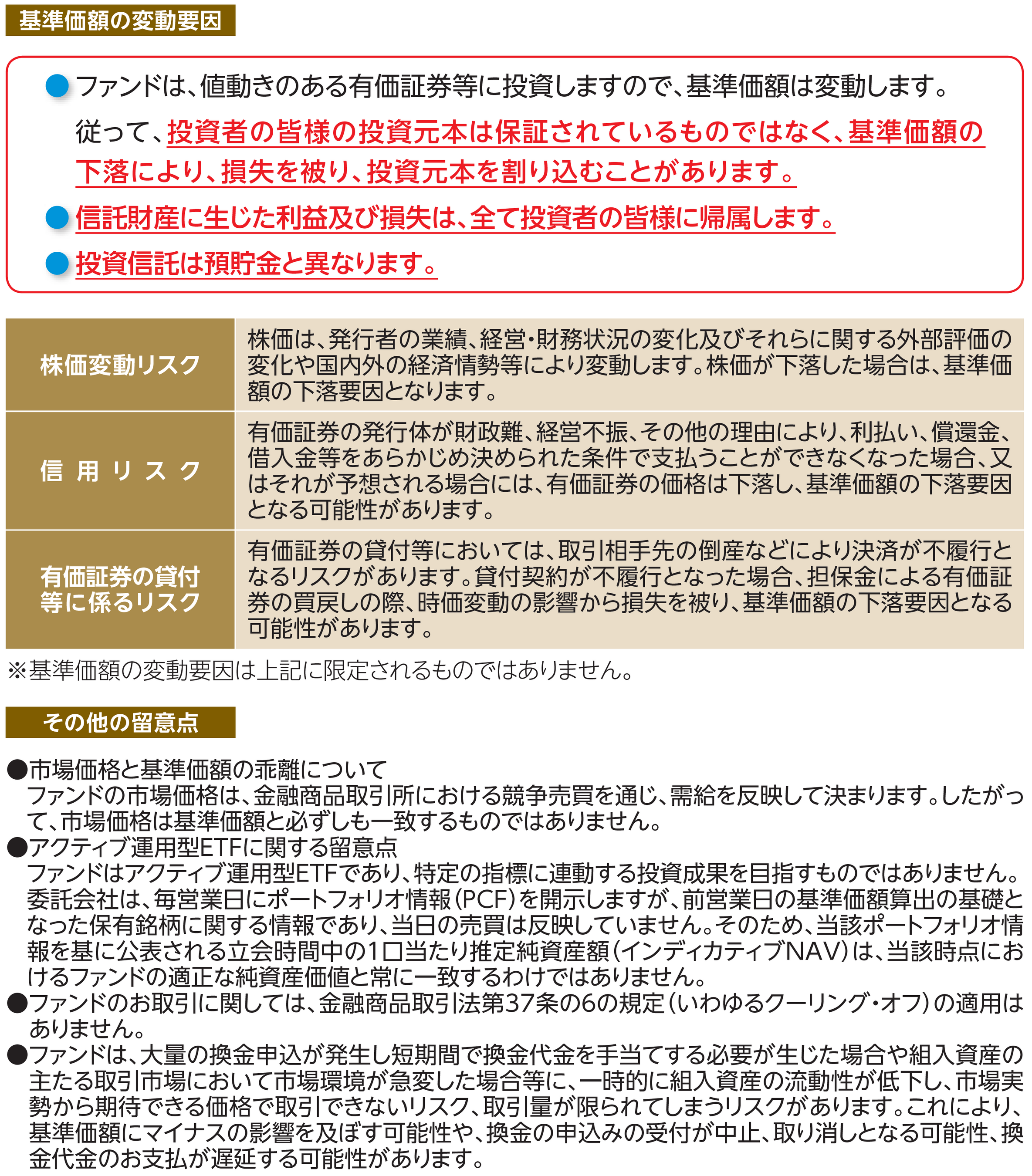 投資リスク(詳しくは投資信託説明書(交付目論見書)をご覧ください。)