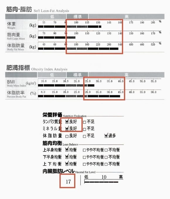 体組成とは、体重・体脂肪・筋肉量・BMIの数値のことです。