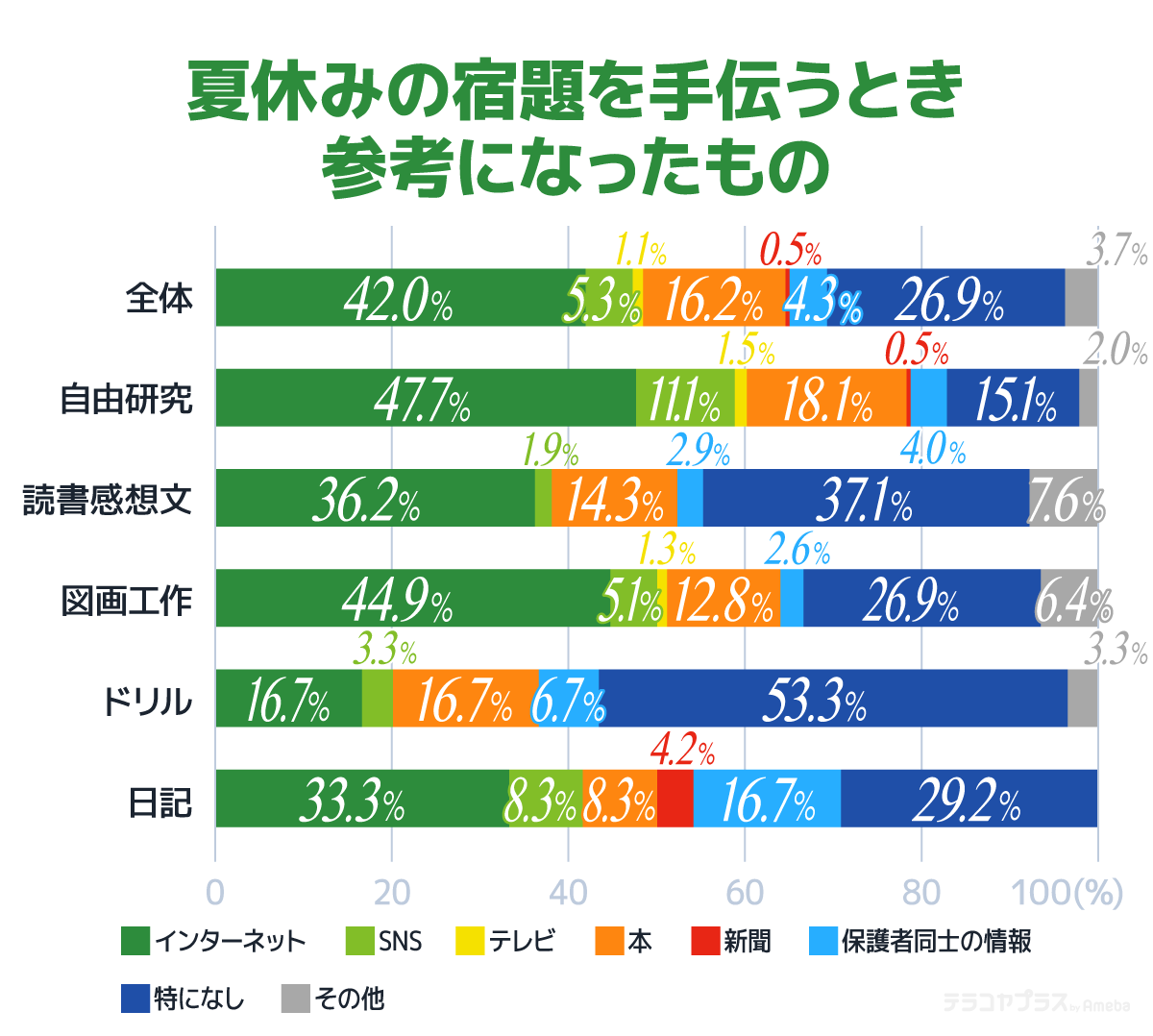 保護者は夏休みの宿題を手伝う際にどこからヒントを得ているのでしょうか。