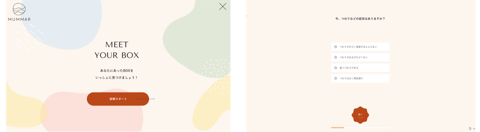 月齢や体調、味覚など簡単な質問に回答する診断コンテンツ