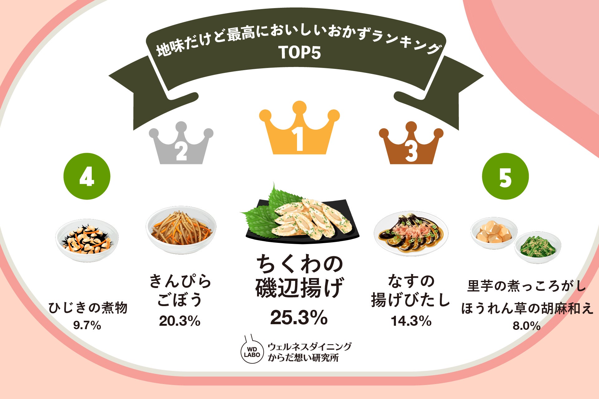 ✓ 地味だけど最高においしいおかず:1位 ちくわの磯辺揚げ、2位 きんぴらごぼう