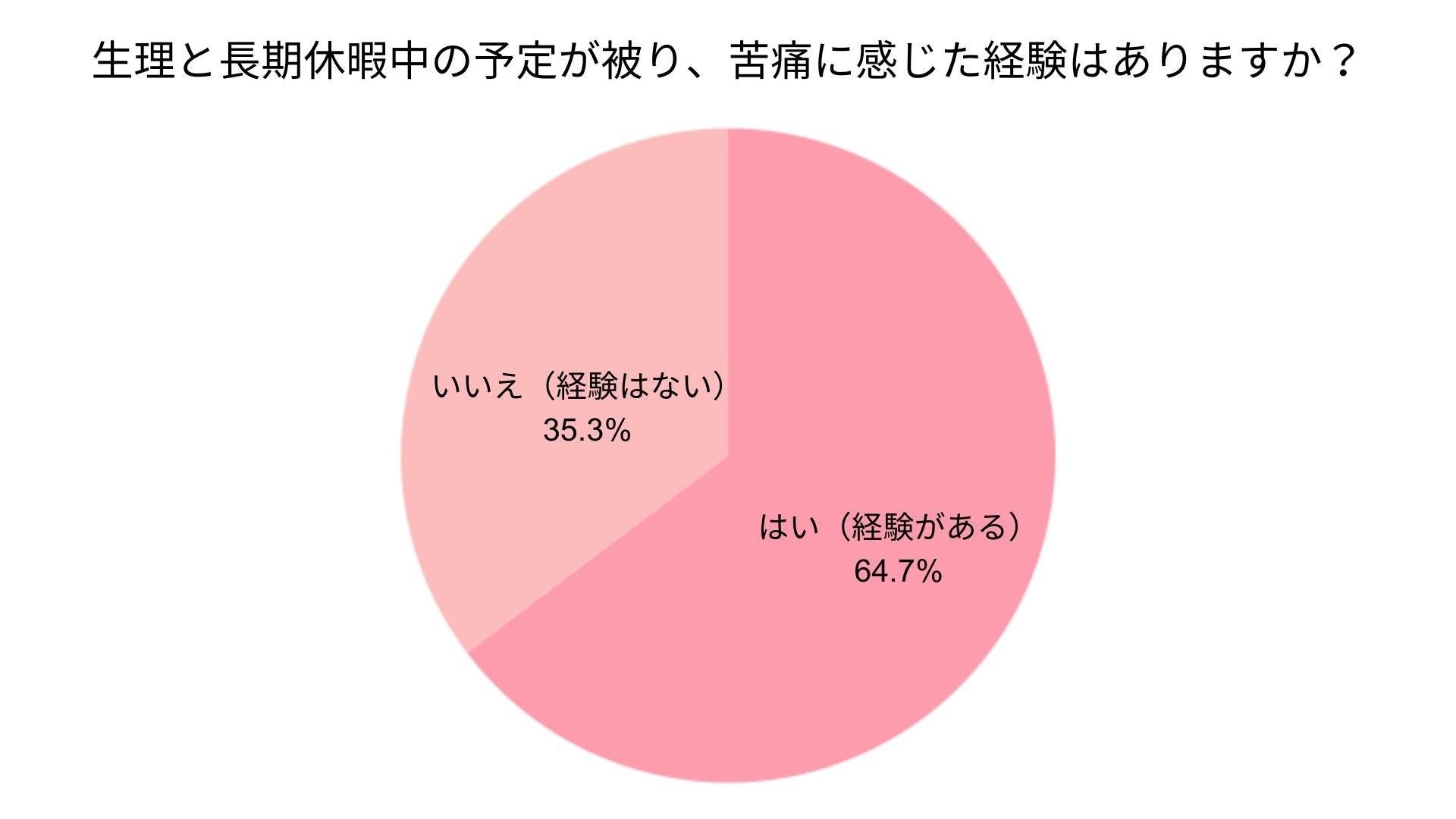 約65%の人は長期休暇中に生理が被ってしまい苦痛に感じた経験があると回答。その理由として、「旅行の際にお手洗いを気にしなければならない」や、「温泉に入ることができない」などの理由があげられた。