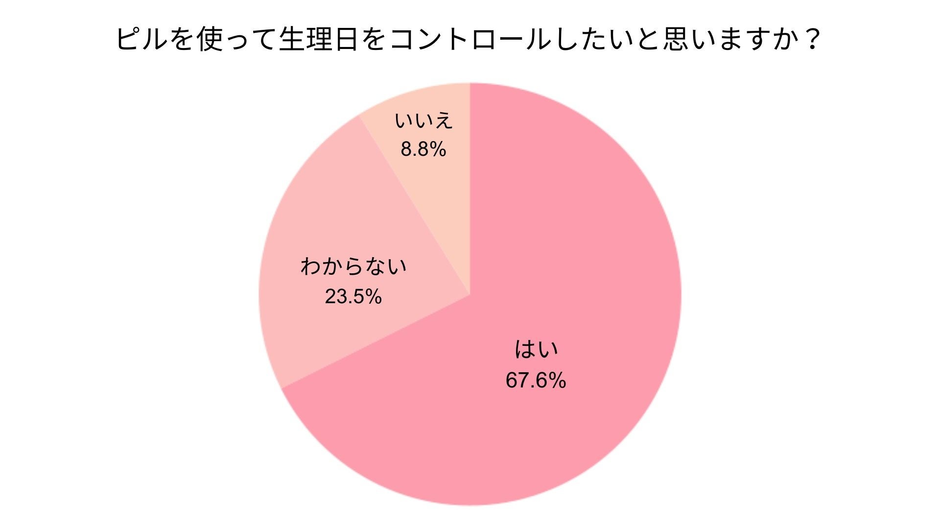 ピルを使って生理日のコントロールを希望する人は67.6%と言う結果に。長期休暇はお出かけをする傾向から、生理が被らないようにコントロールしたい方が過半数を占めた。