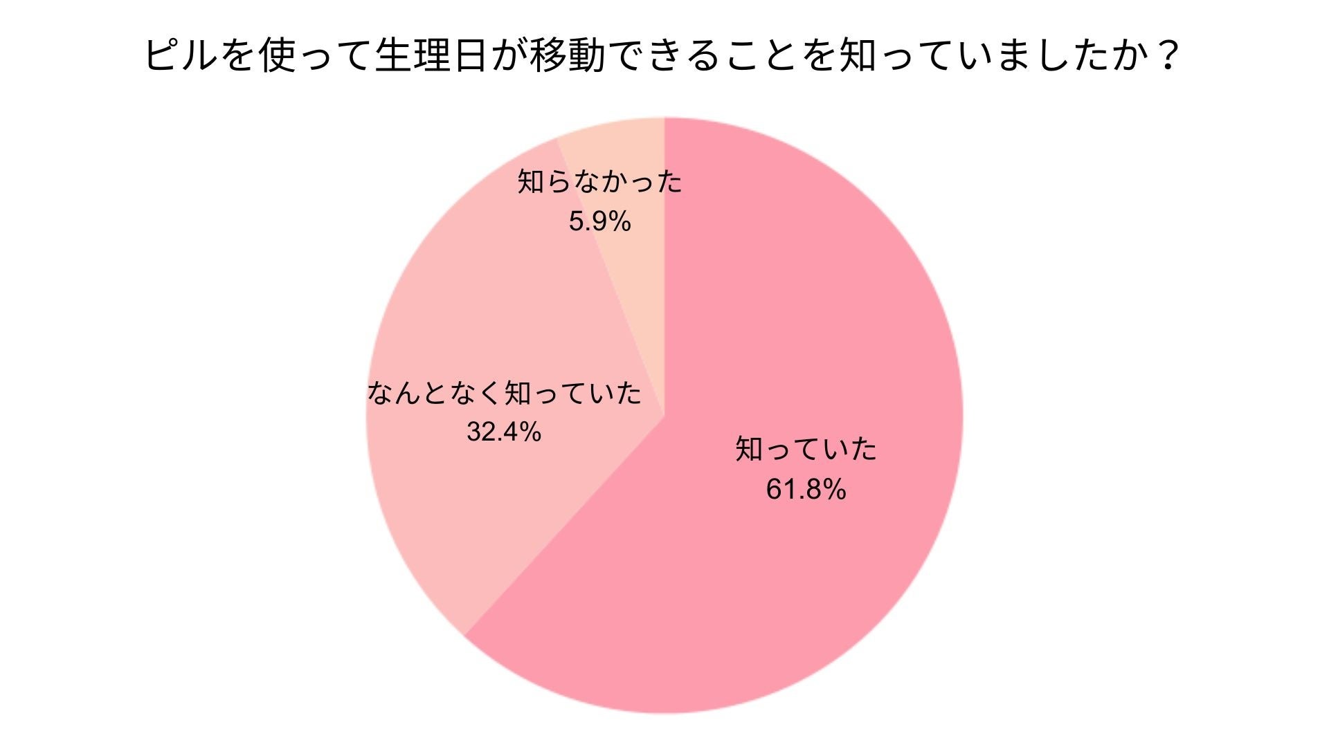 ピルで生理日移動ができることに対し、9割以上が「知っていた」「なんとなく知っていた」と回答。ピルで生理日を移動出来ることの認知は高いことがわかった。