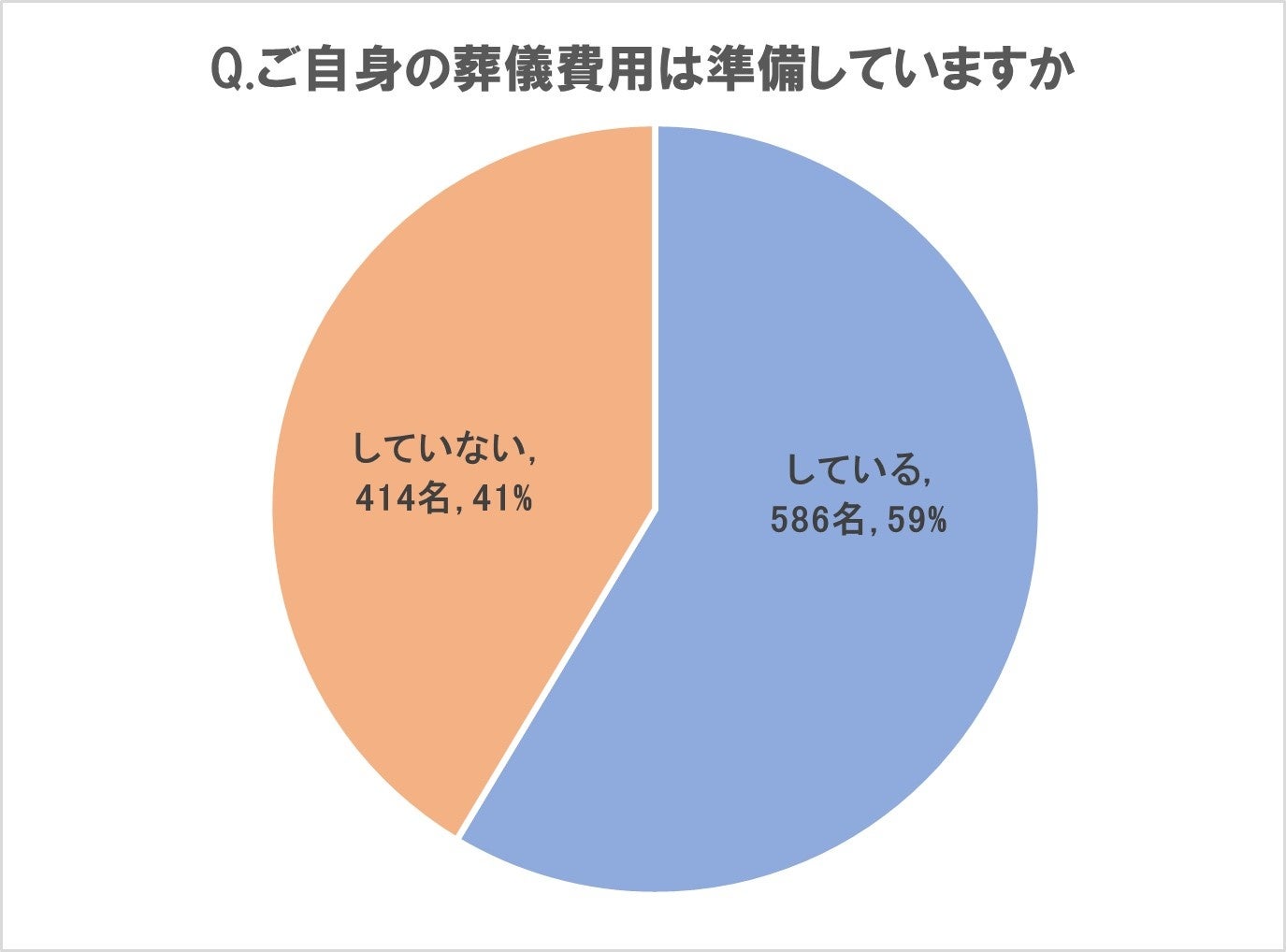 自身の葬儀費用を準備している人は 59%で昨年の47%から12P増加。