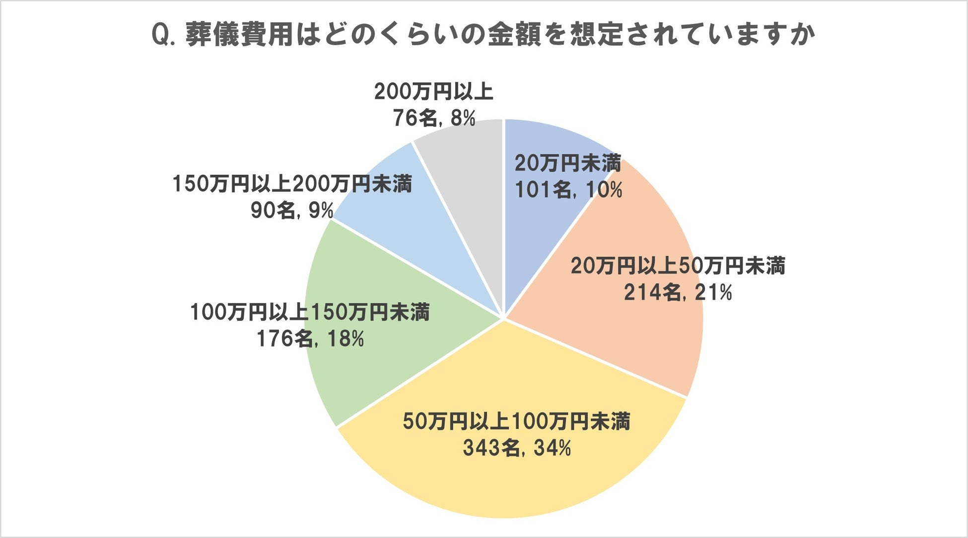 ■想定している葬儀費用は、1位「50万円以上100万円未満」34%、2位「20万円以上50万円未満」21%、3位「100万円以上150万円未満」18%。