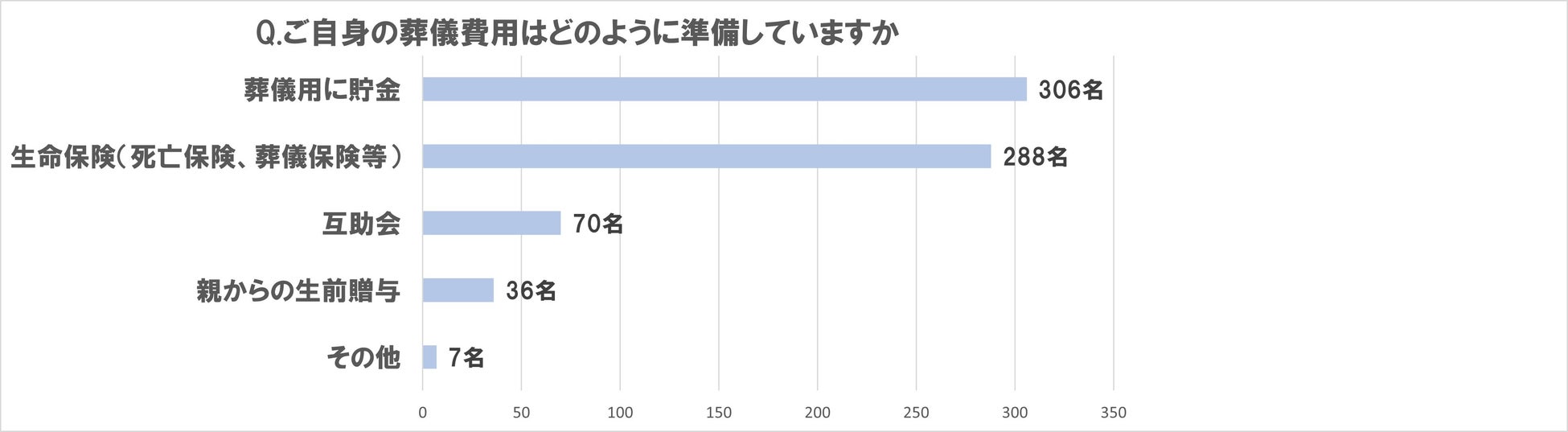 準備方法は、1位「葬儀用に貯金」306名 52%、2位「生命保険」288名 49%、