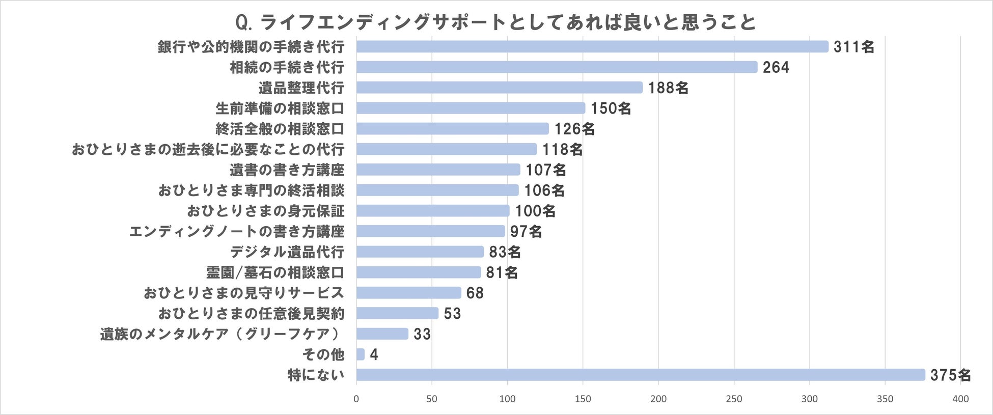 1位「銀行や公的機関の手続き代行」311名、2位「相続の手続き代行」264名、