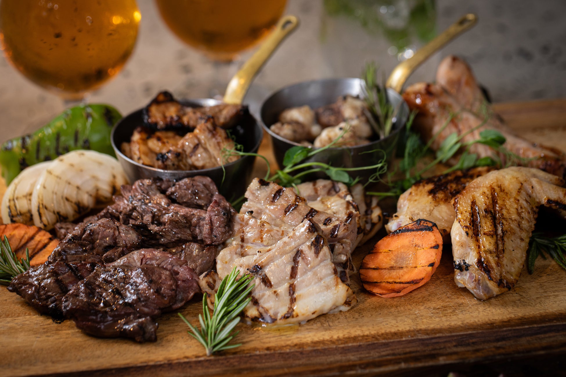 特別感のある開放的な空間で楽しむテラスグリルは、お客様ご自身で焼き上げるBBQスタイル。各テーブルには「MEATプレート」をご用意します。ジュージューと音を立てて焼き上がる香ばしいお肉を、会話を弾ませながら、お好みの焼き加減でお楽しみいただけます。なお、プレートの追加はオプション(有料)にて承ります。