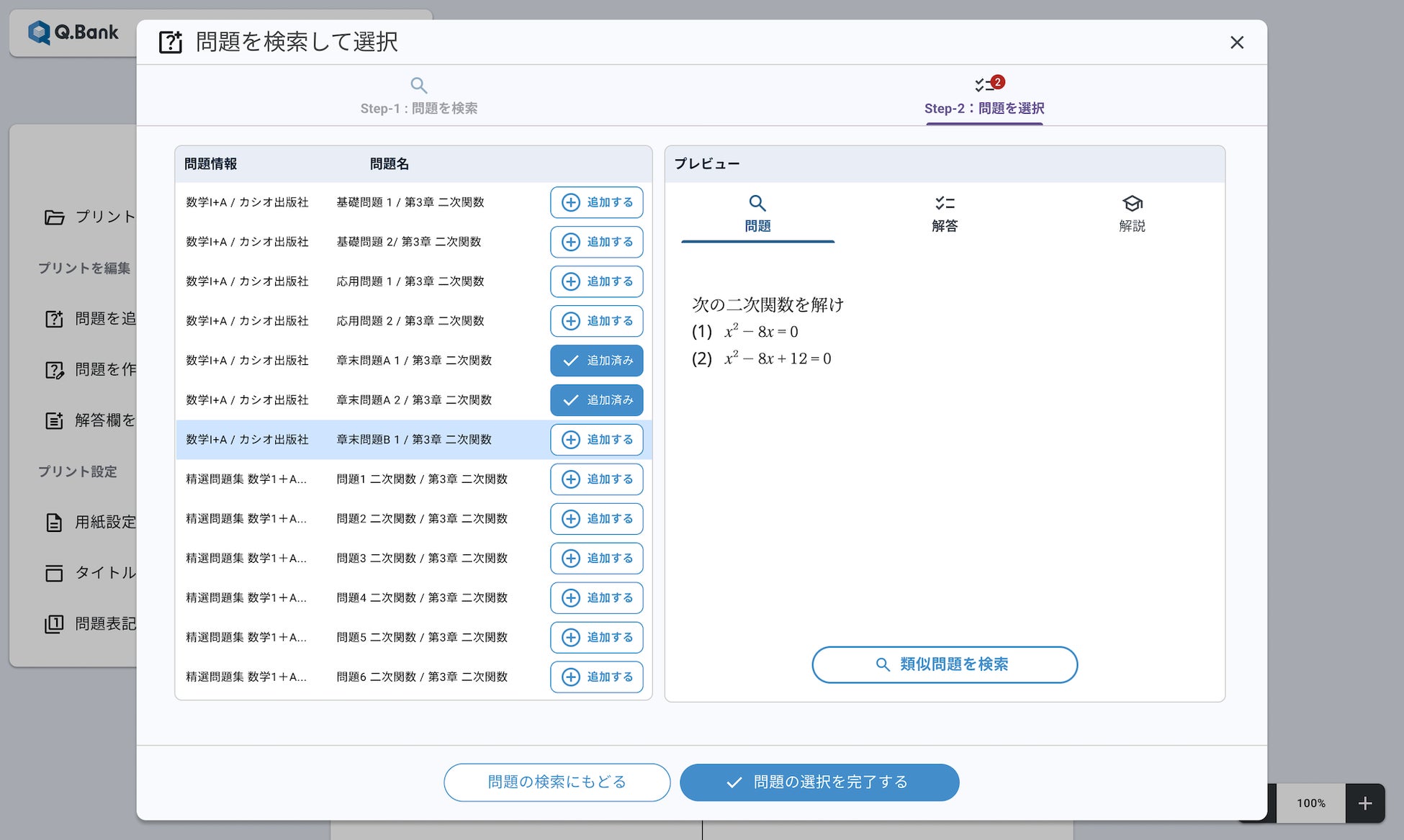 今回ご案内します『Q.Bank』は各出版社の多種多様な問題を横断して選択・編集し、オリジナルの試験問題や補助教材が作れるプリント作成ツールです。