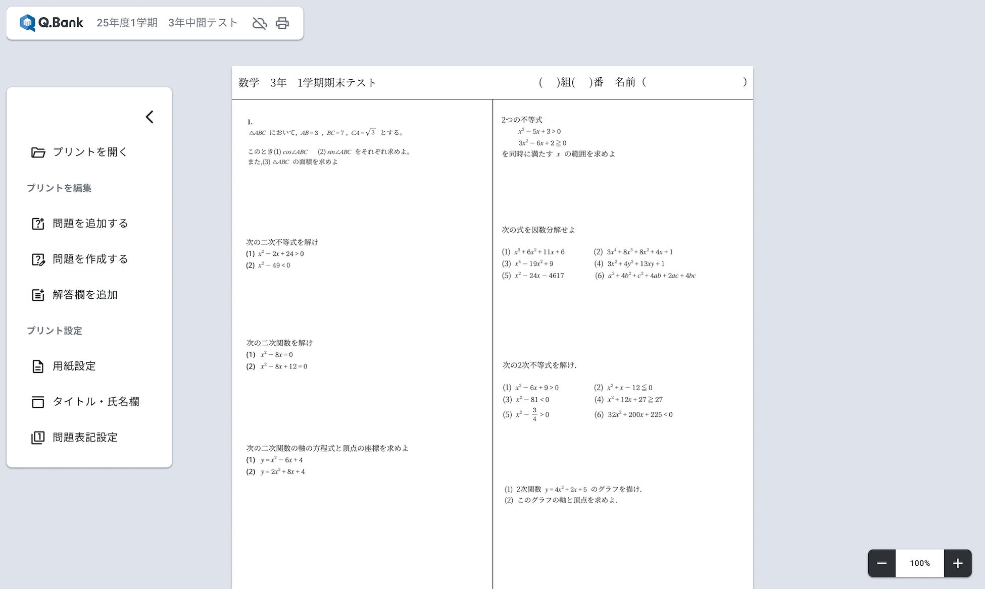 『Libryプリント作成ツール Q.Bank』のイメージ画面