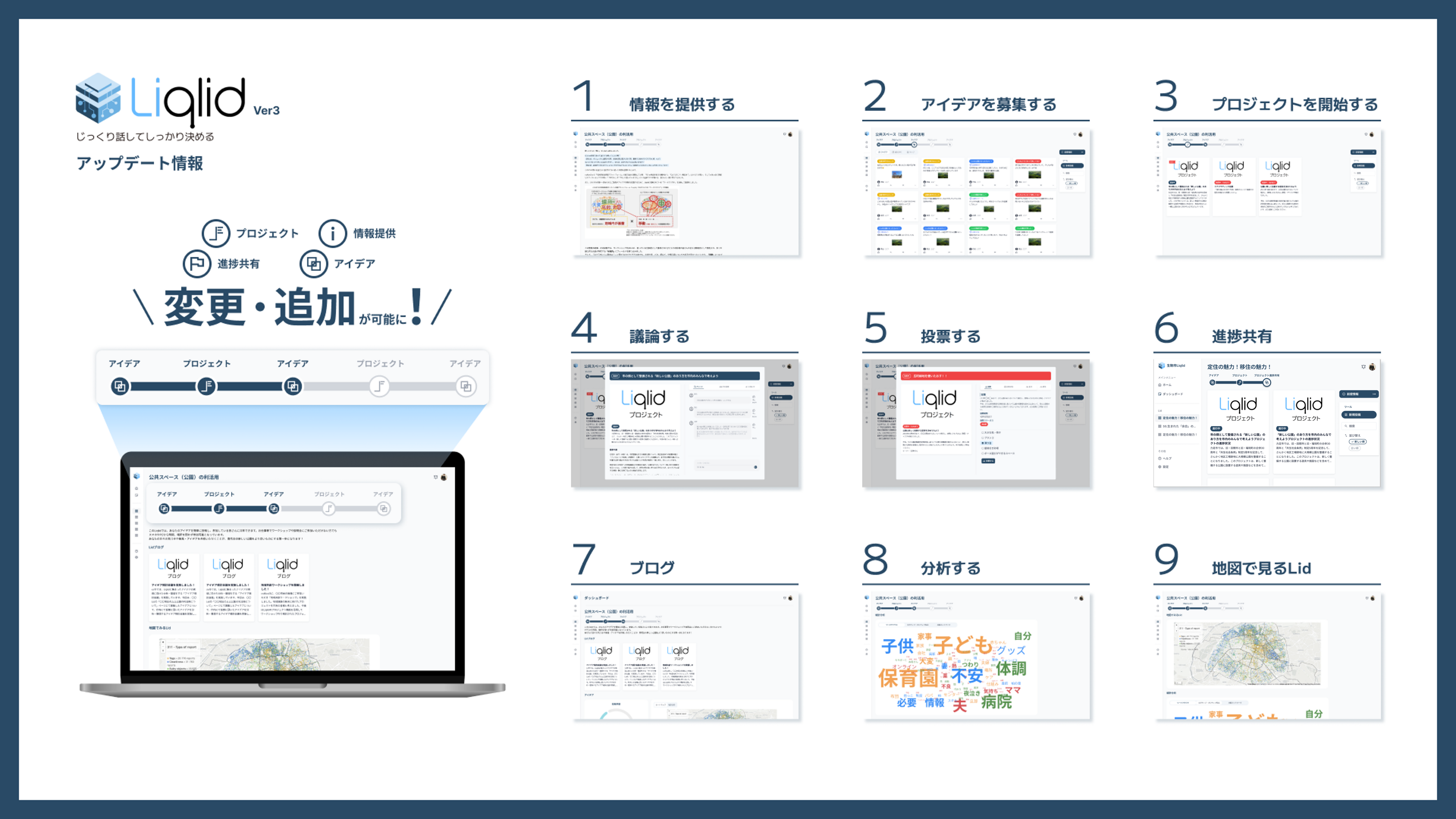 今後も弊社は、各自治体・地域での市民や自治体職員の皆さん、そして独自に実施するヒアリングに基づき、Liqlidの機能・UIの定期的な改善に取り組んでいきます。